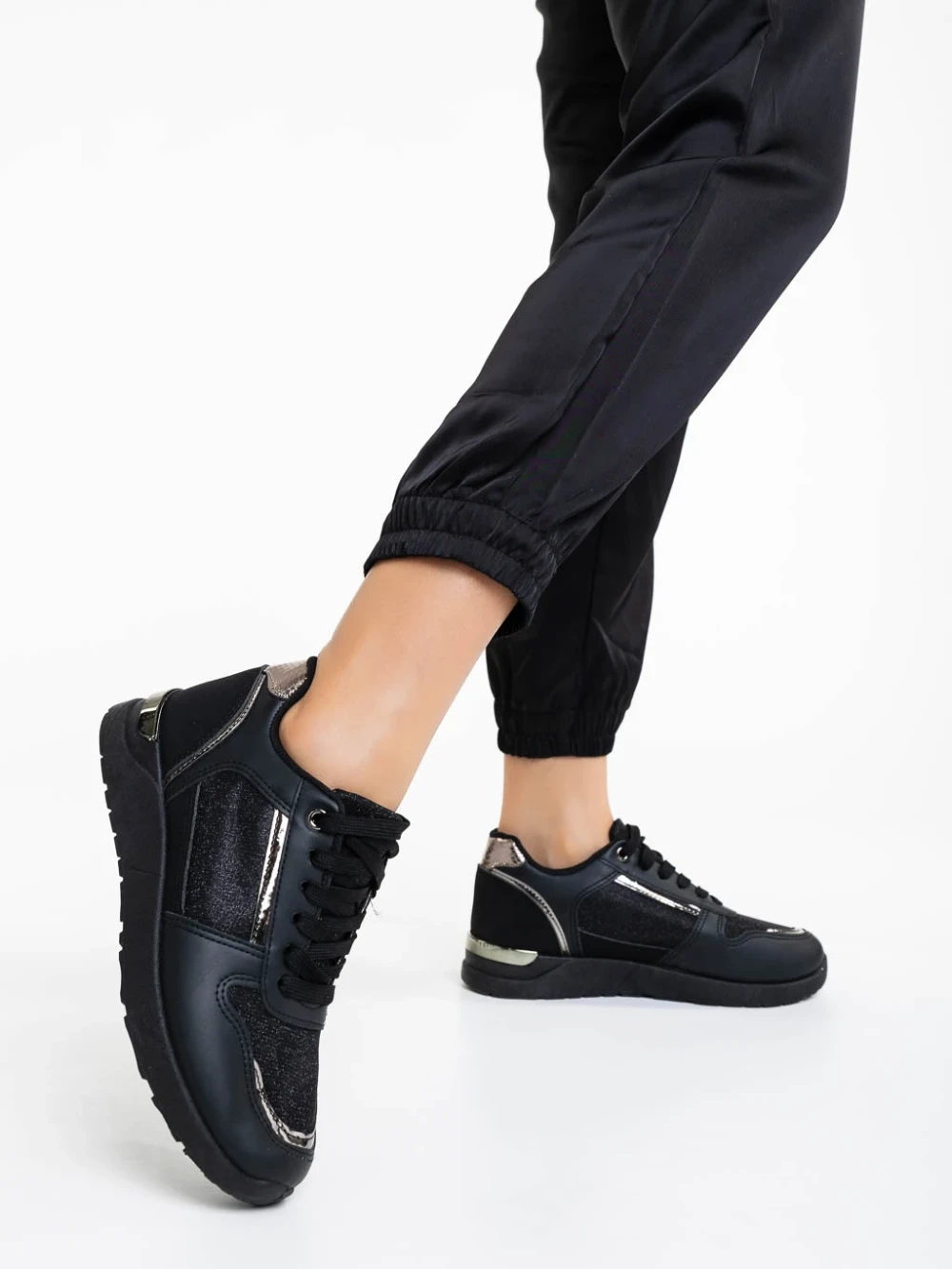 Pantofi sport dama negri din piele ecologica Litsa Detalii produs