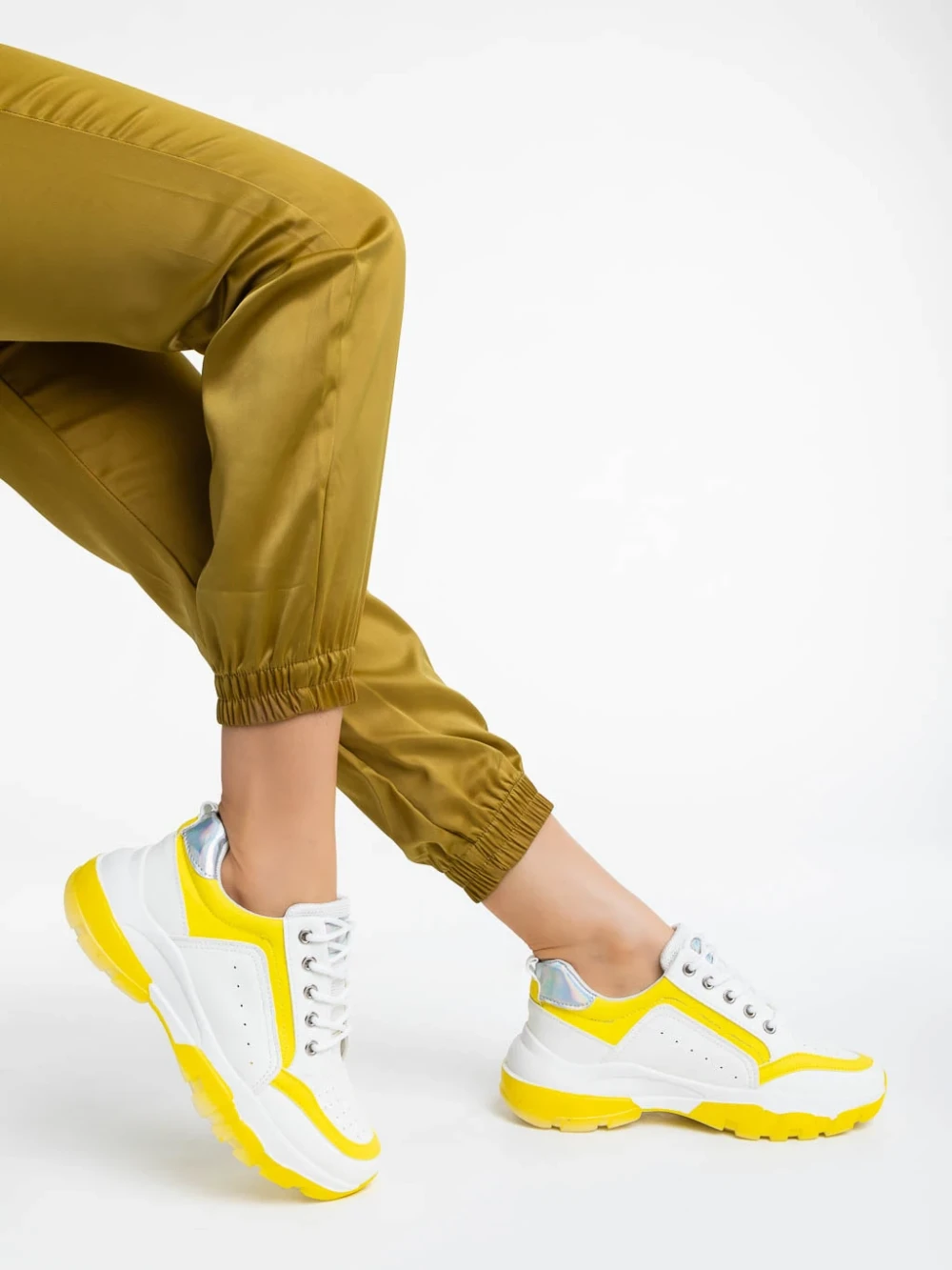 Pantofi sport dama albi cu galben din piele ecologica Mona Detalii produs