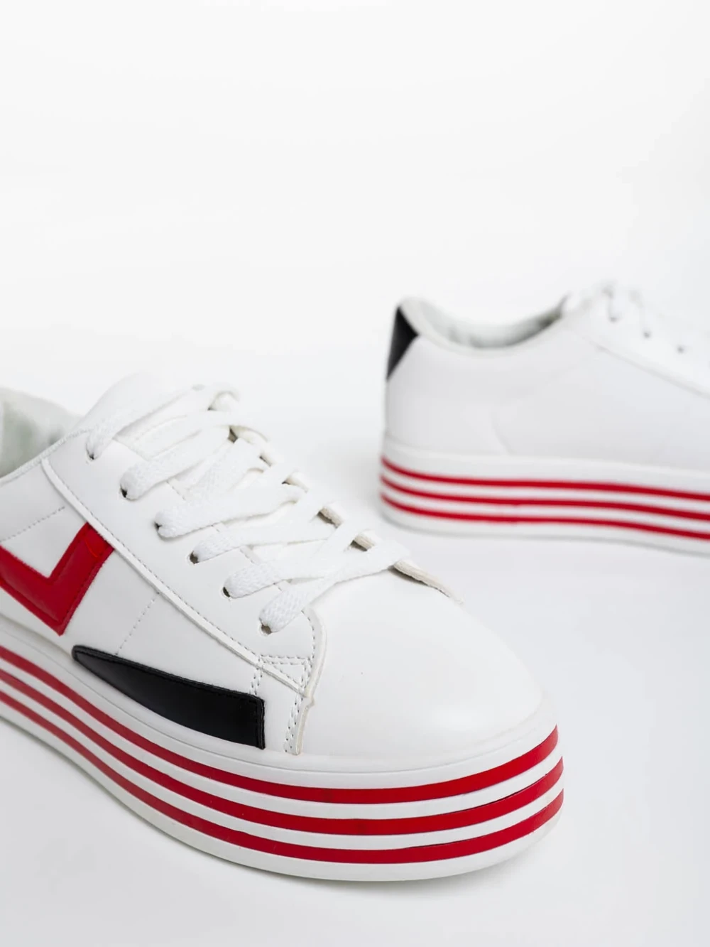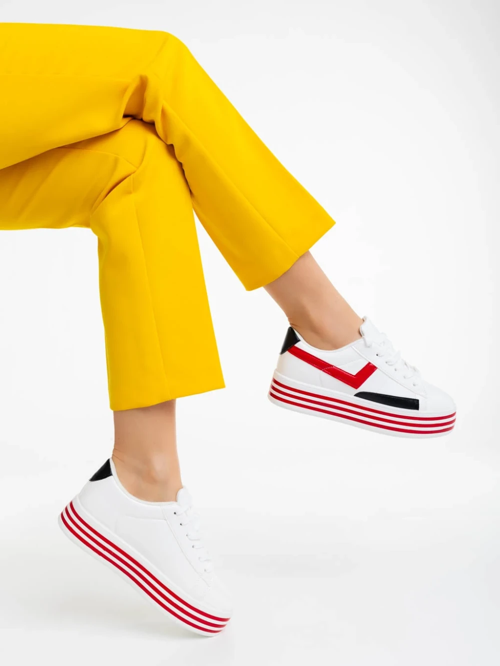 Pantofi sport dama albi cu rosu din piele ecologica Gratiela Detalii produs