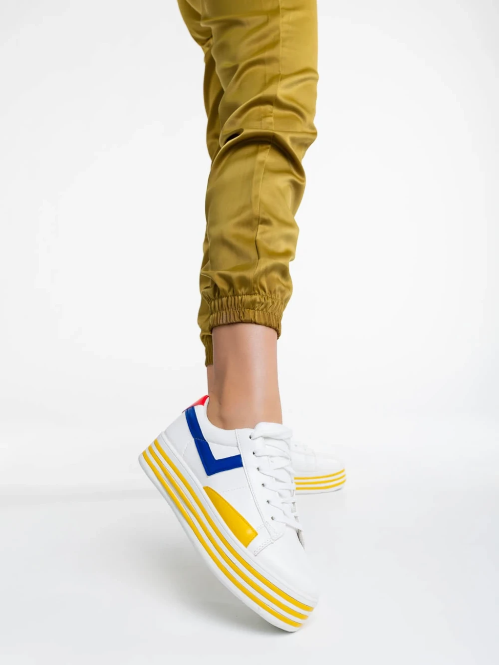Pantofi sport dama albi cu galben din piele ecologica Gratiela Detalii produs