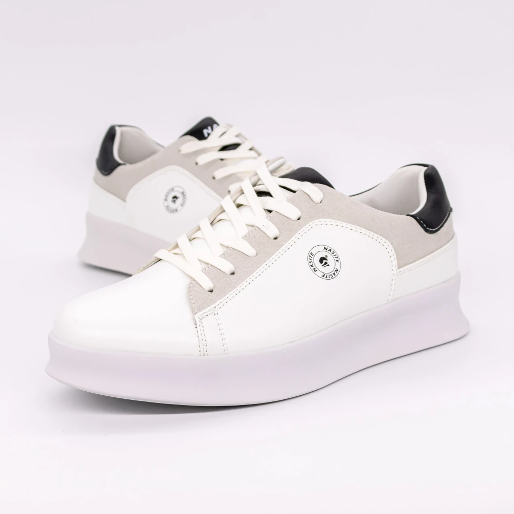 Pantofi sport barbati albi cu negru din piele ecologica Pierino Detalii produs