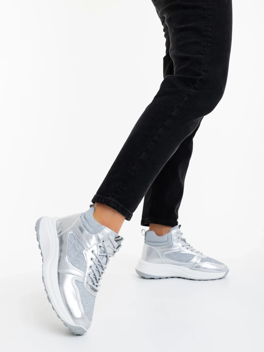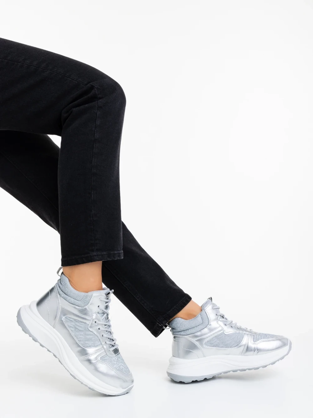 Pantofi sport dama argintii din material textil si material sintetic Varava Detalii produs