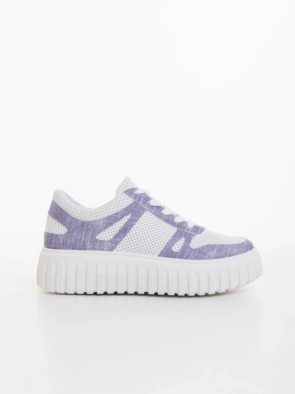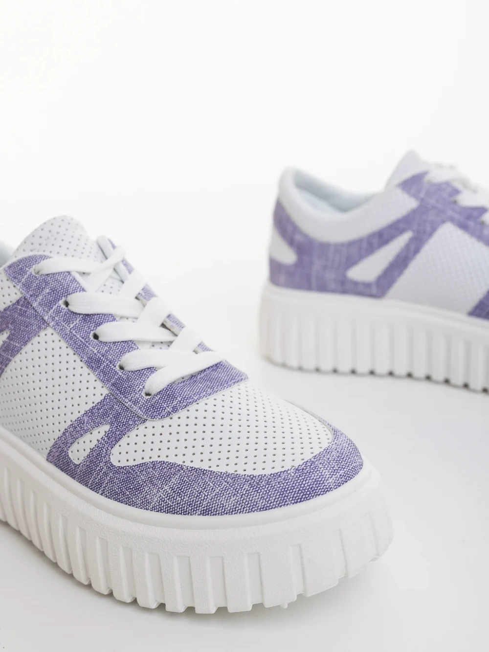 Pantofi sport dama albi cu mov din piele ecologica Diara Detalii produs
