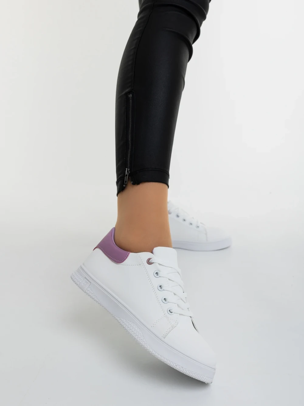 Pantofi sport dama albi cu mov din piele ecologica Everia Detalii produs