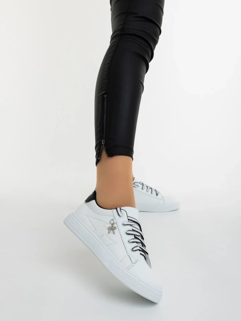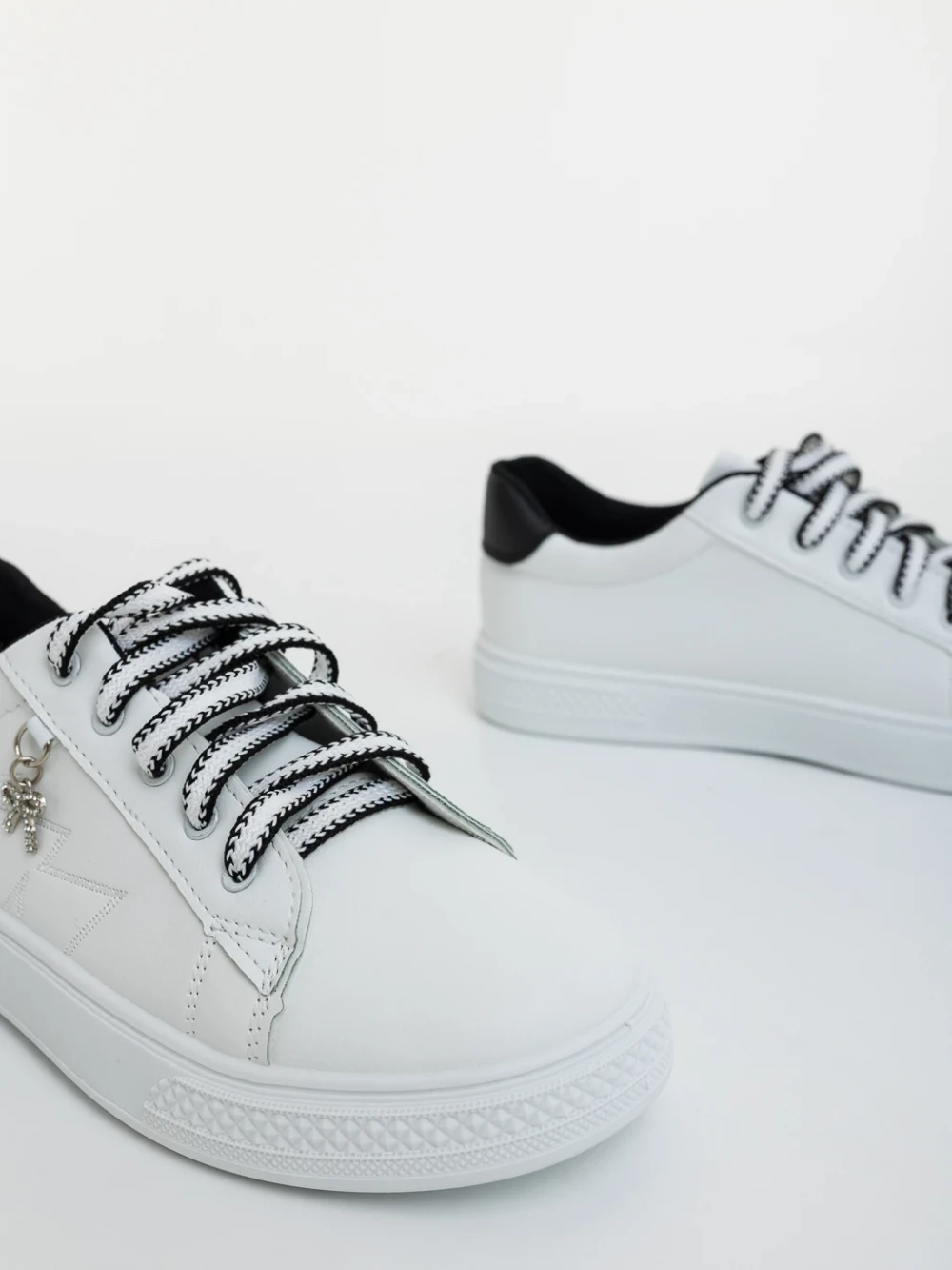 Pantofi sport dama albi cu negru din piele ecologica Catiopia Detalii produs