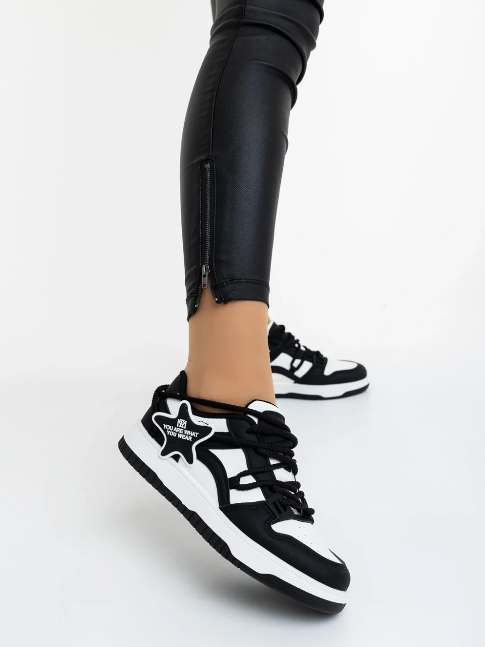Pantofi sport dama negri cu alb din piele ecologica Serenza Detalii produs