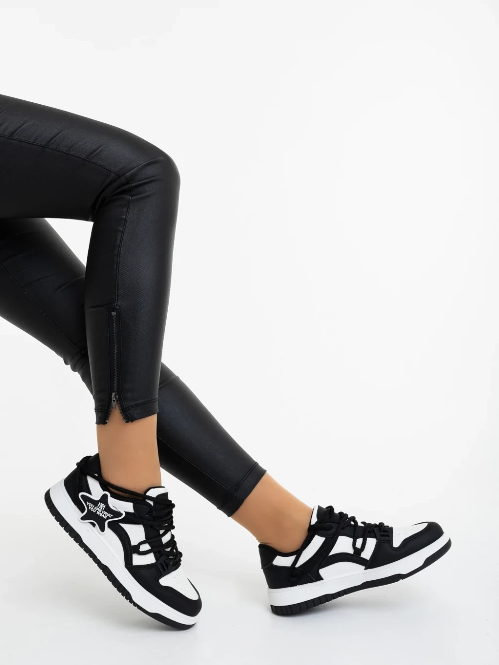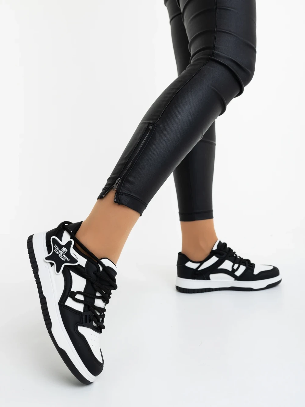 Pantofi sport dama negri cu alb din piele ecologica Serenza