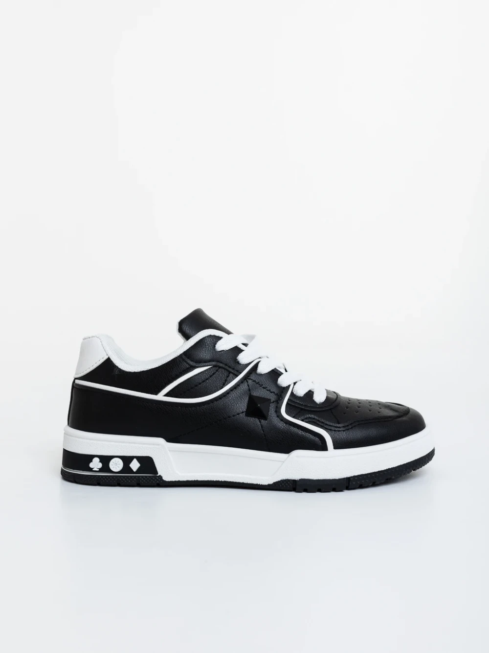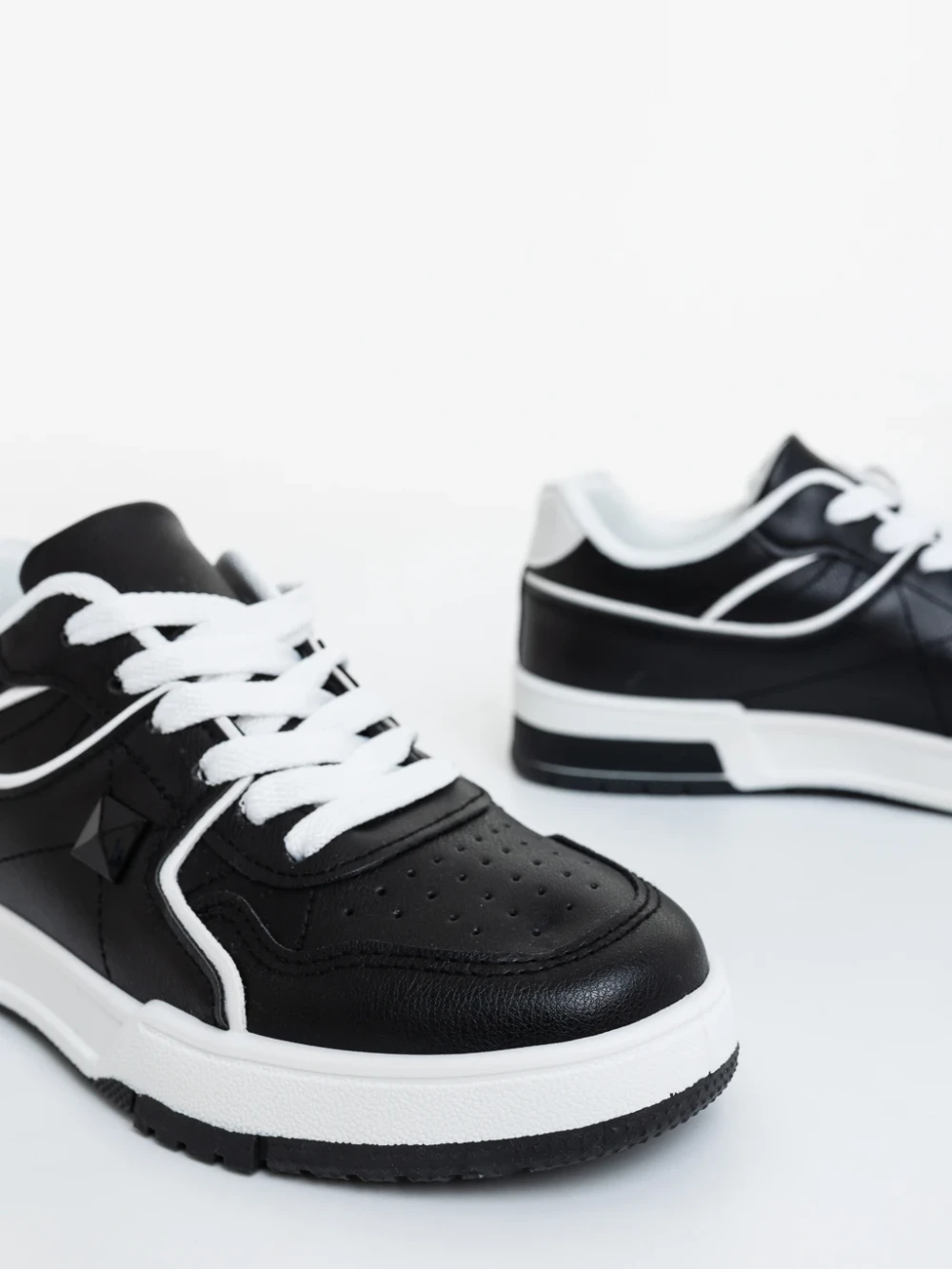 Pantofi sport dama negri cu alb din piele ecologica Dachara Detalii produs