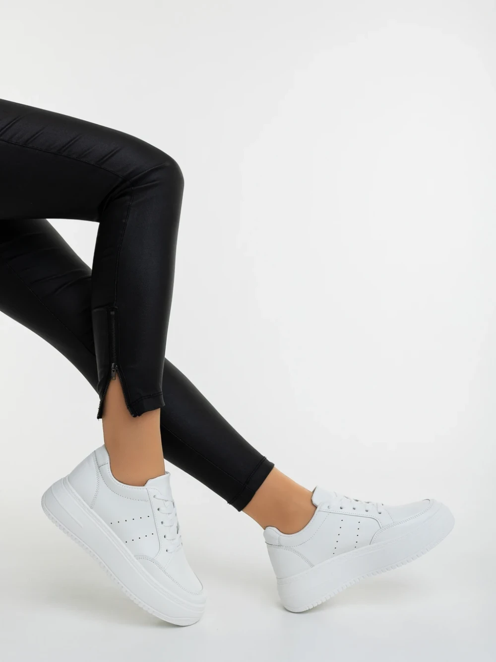 Pantofi sport dama albi din piele ecologica Rivenia