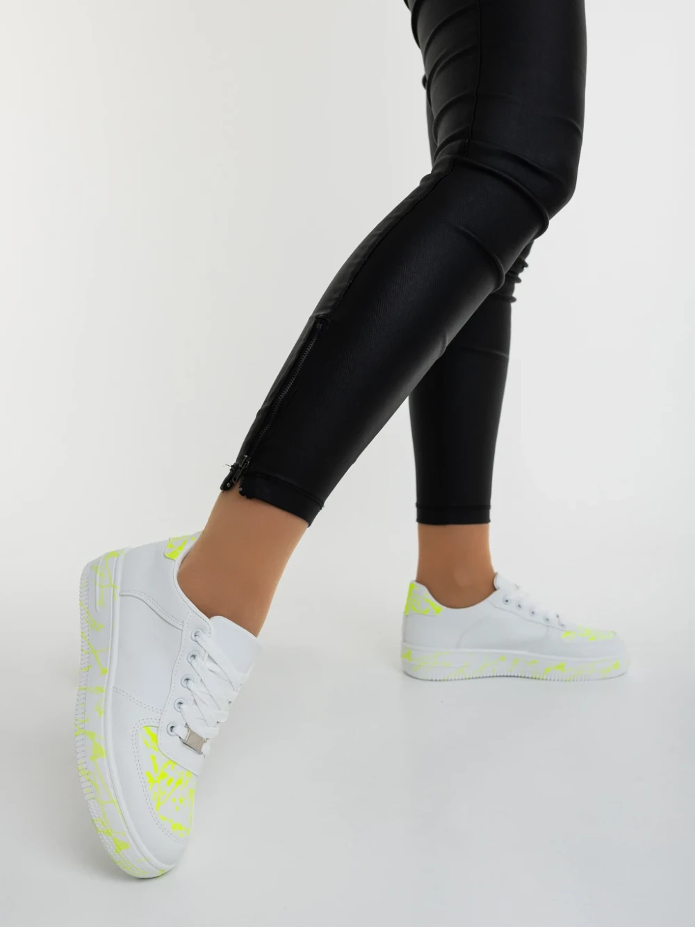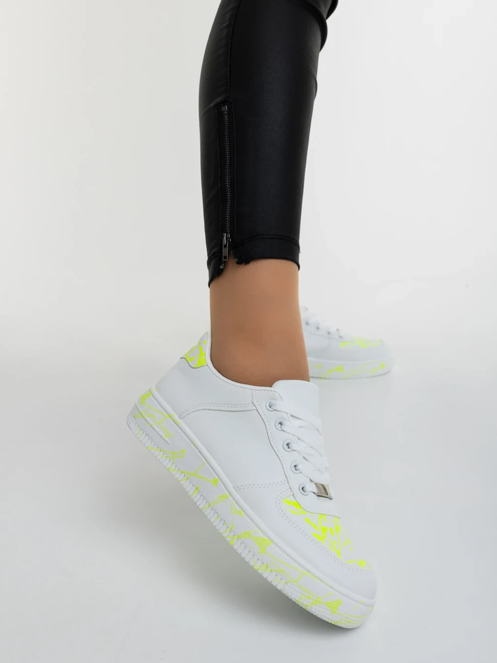 Pantofi sport dama albi cu verde neon din piele ecologica Safara