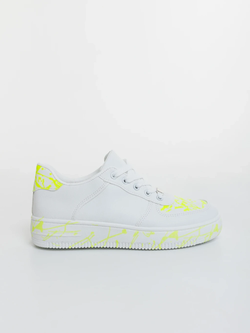 Pantofi sport dama albi cu verde neon din piele ecologica Safara Detalii produs