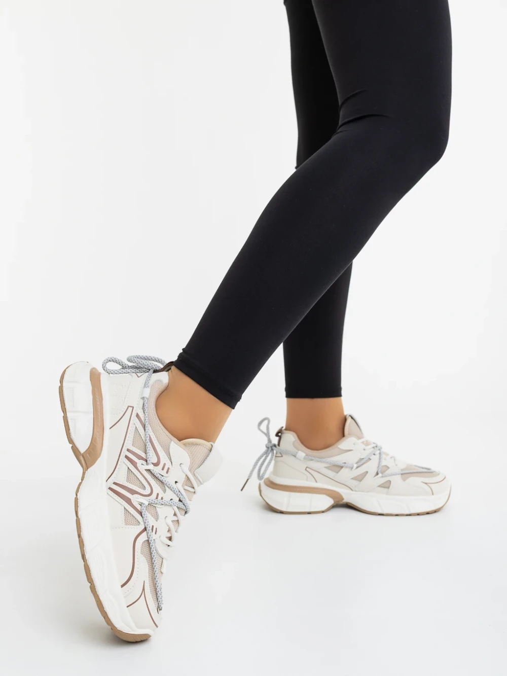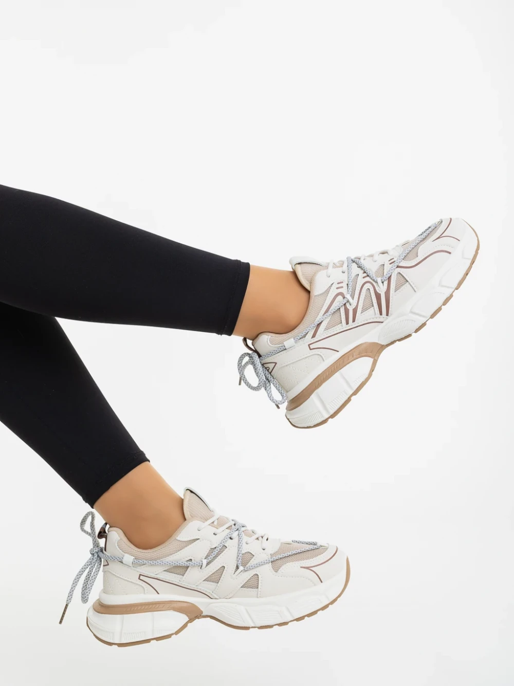 Pantofi sport dama bej din piele ecologica si material textil Lotiva Detalii produs