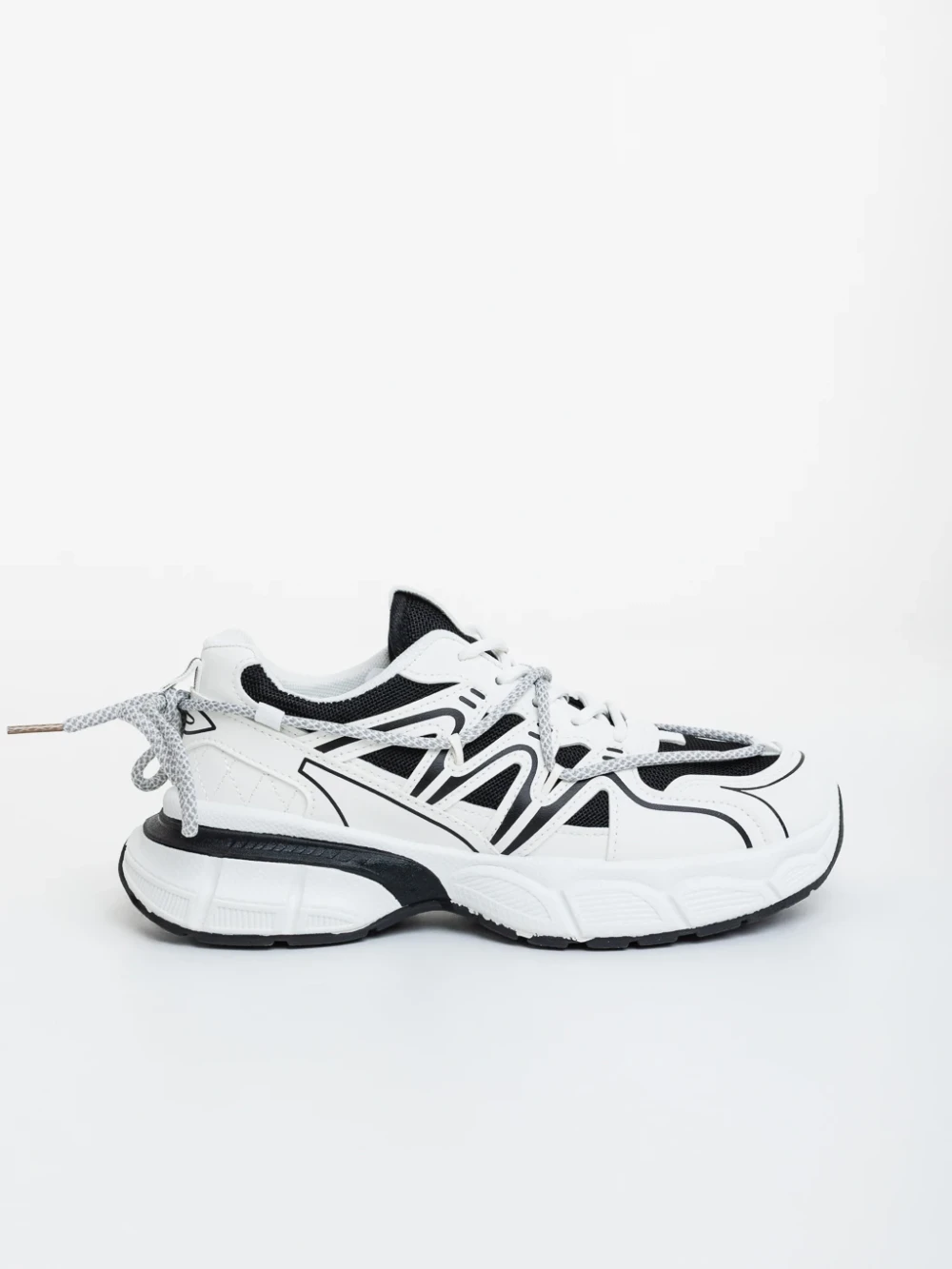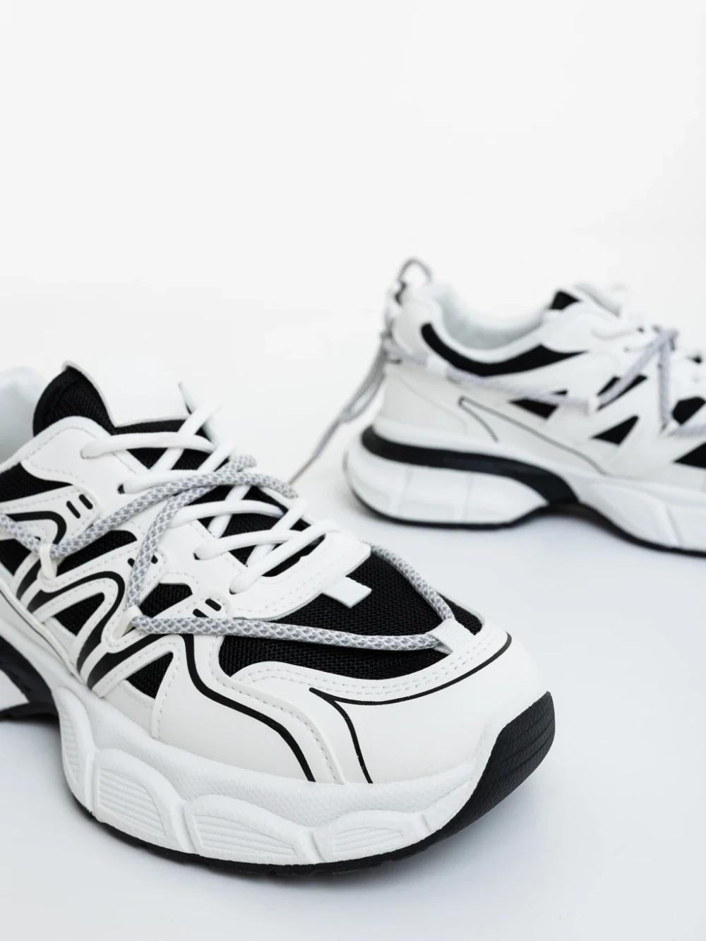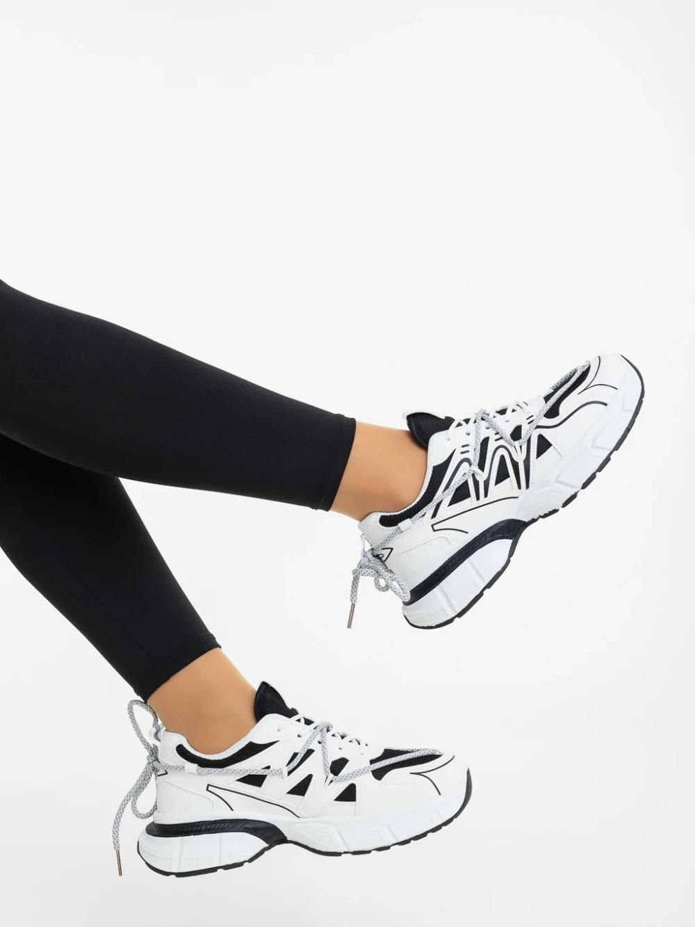 Pantofi sport dama albi cu negru din piele ecologica si material textil Lotiva