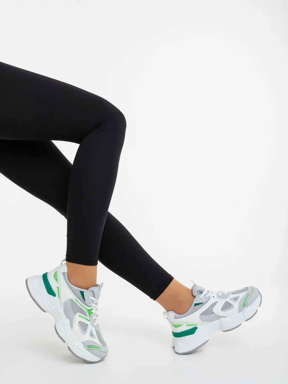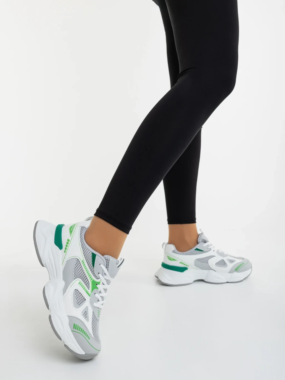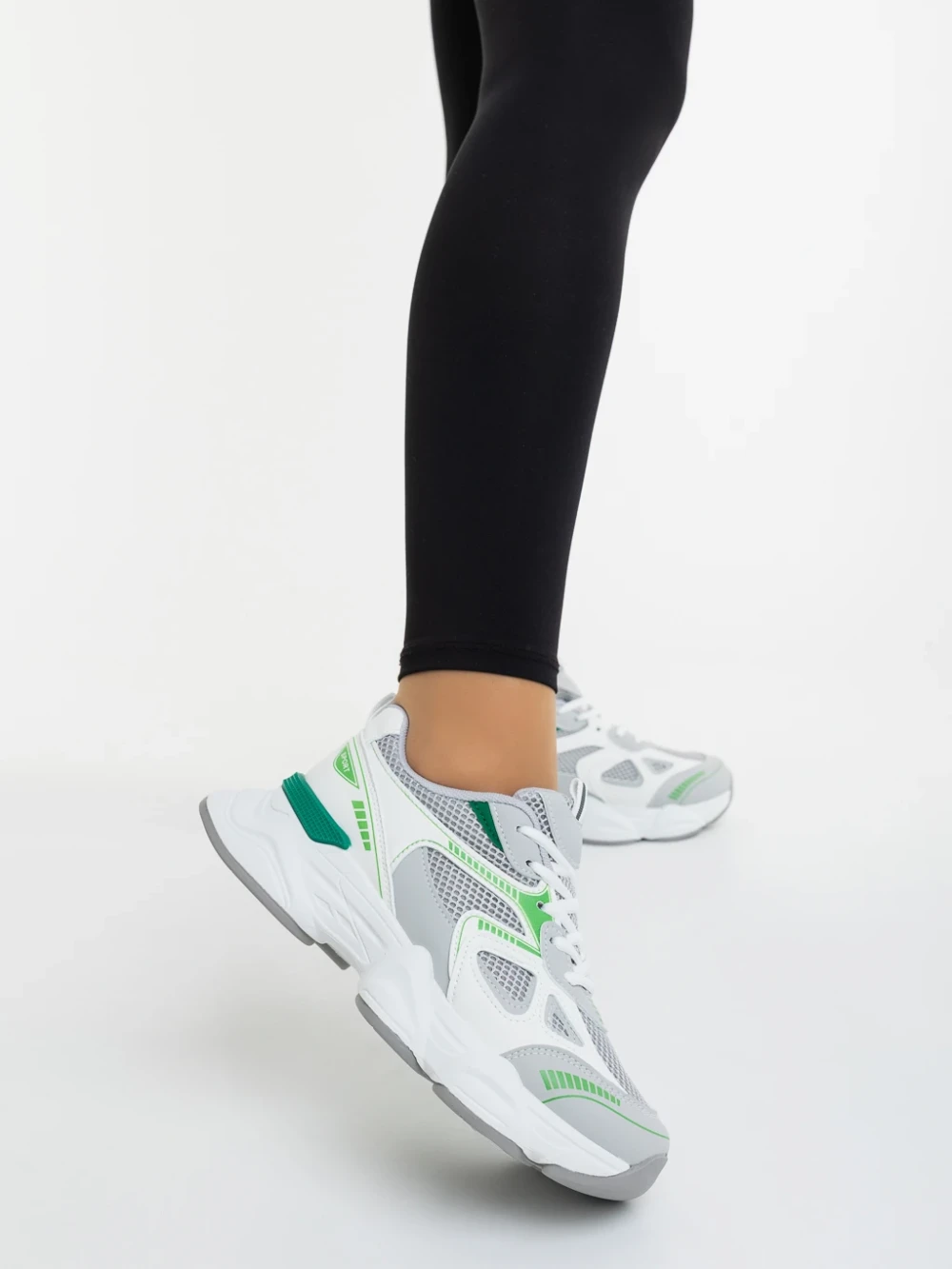 Pantofi sport dama albi cu verde din piele ecologica si material textil Zehara Detalii produs