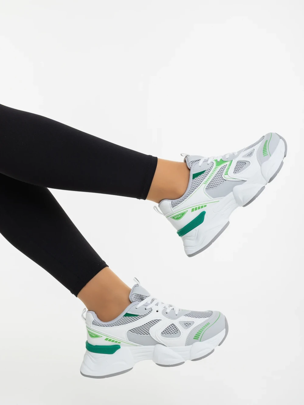 Pantofi Sport Dama 963 Alb-Verde | Fashion
