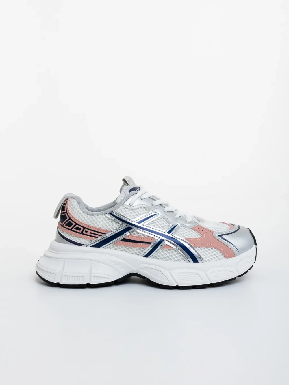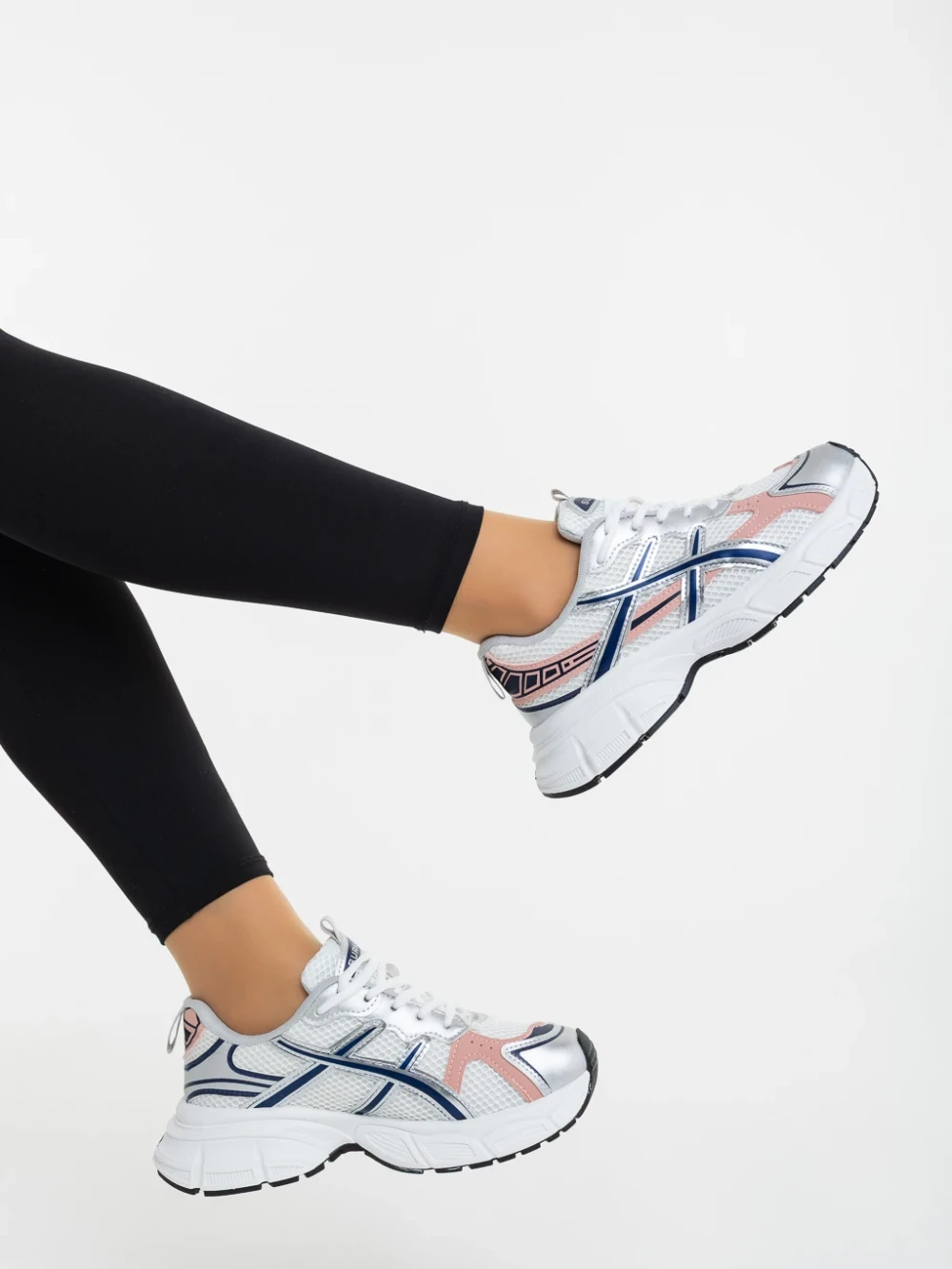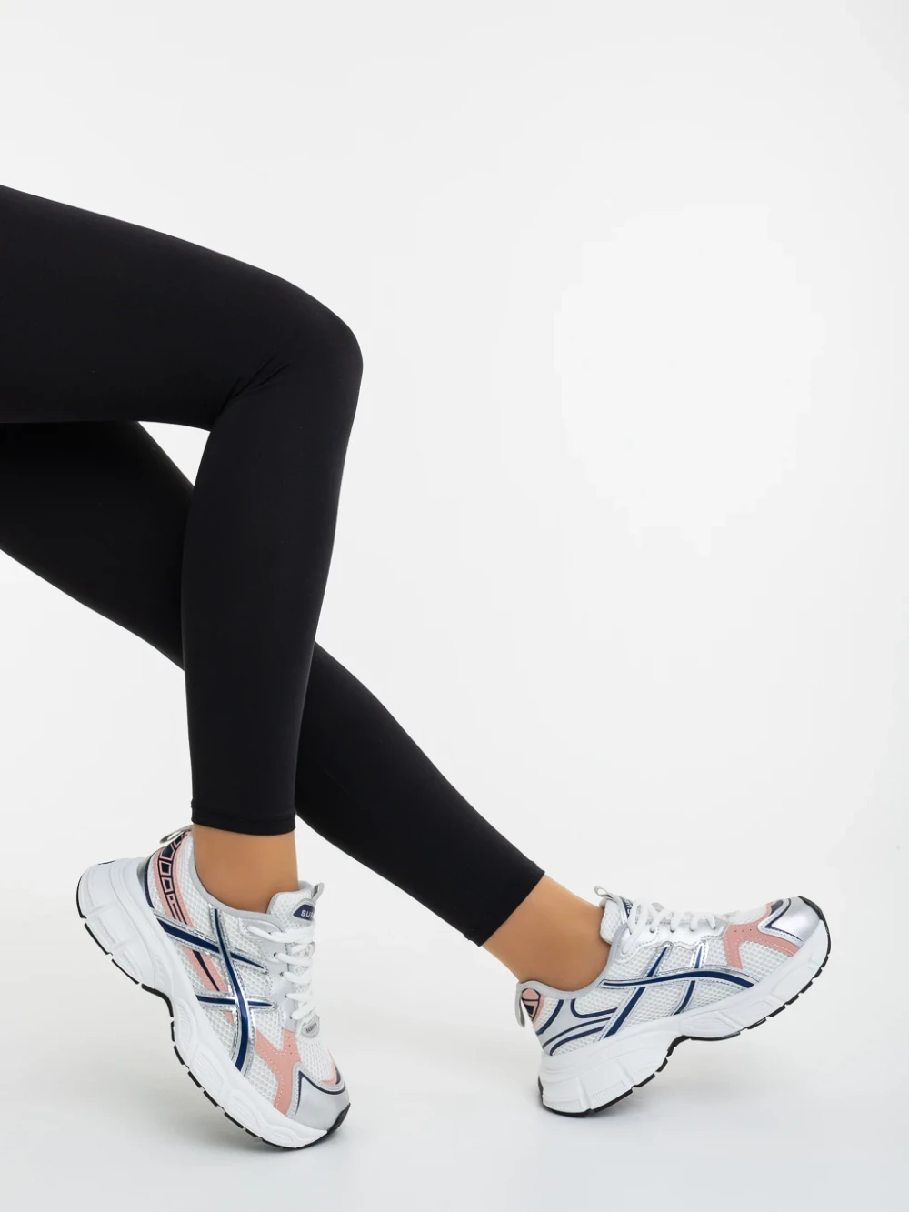 Pantofi sport dama albi cu roz din piele ecologica si material textil Elle