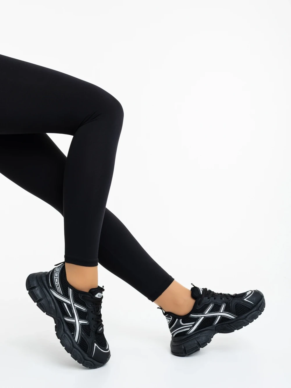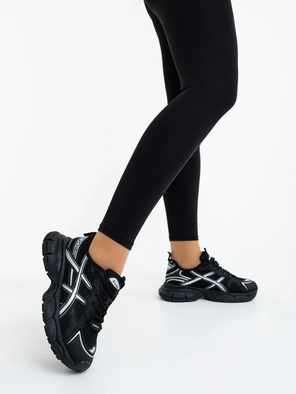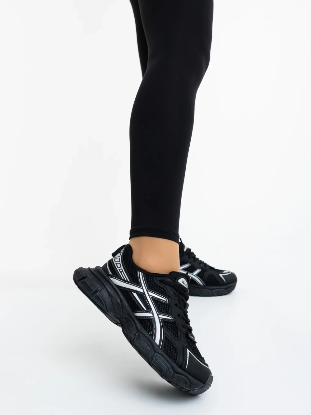 Pantofi sport dama negri din piele ecologica si material textil Elle Detalii produs