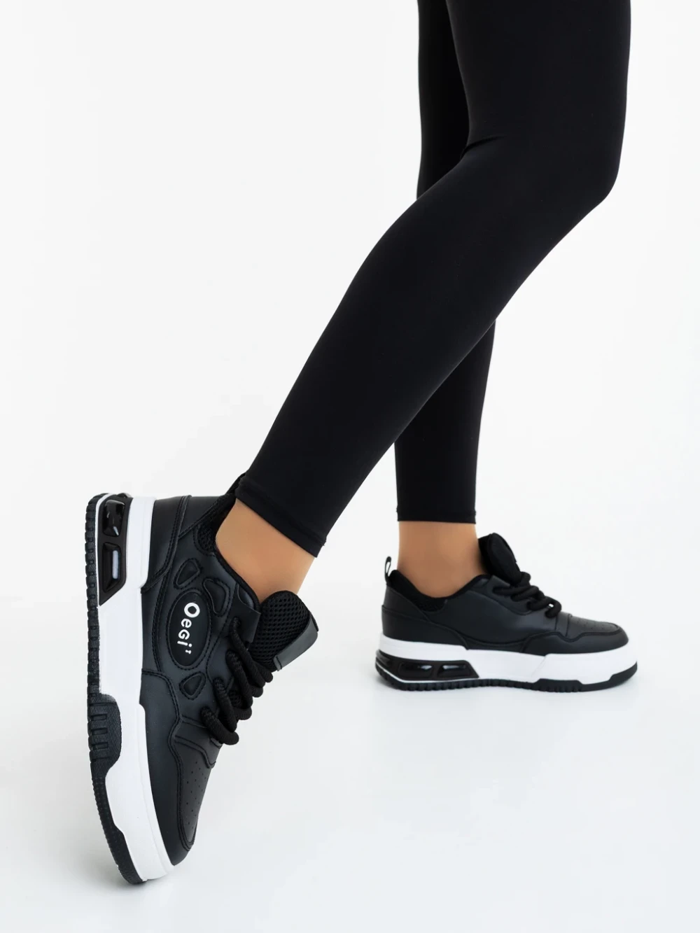 Pantofi sport dama negri cu alb din piele ecologica Aresia Detalii produs