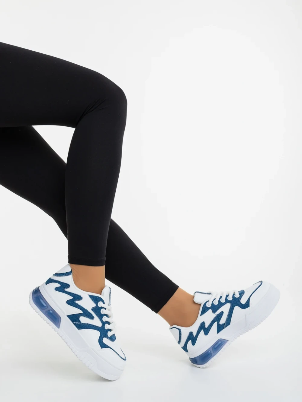 Pantofi sport dama albi cu albastru din piele ecologica si material textil Sindria Detalii produs
