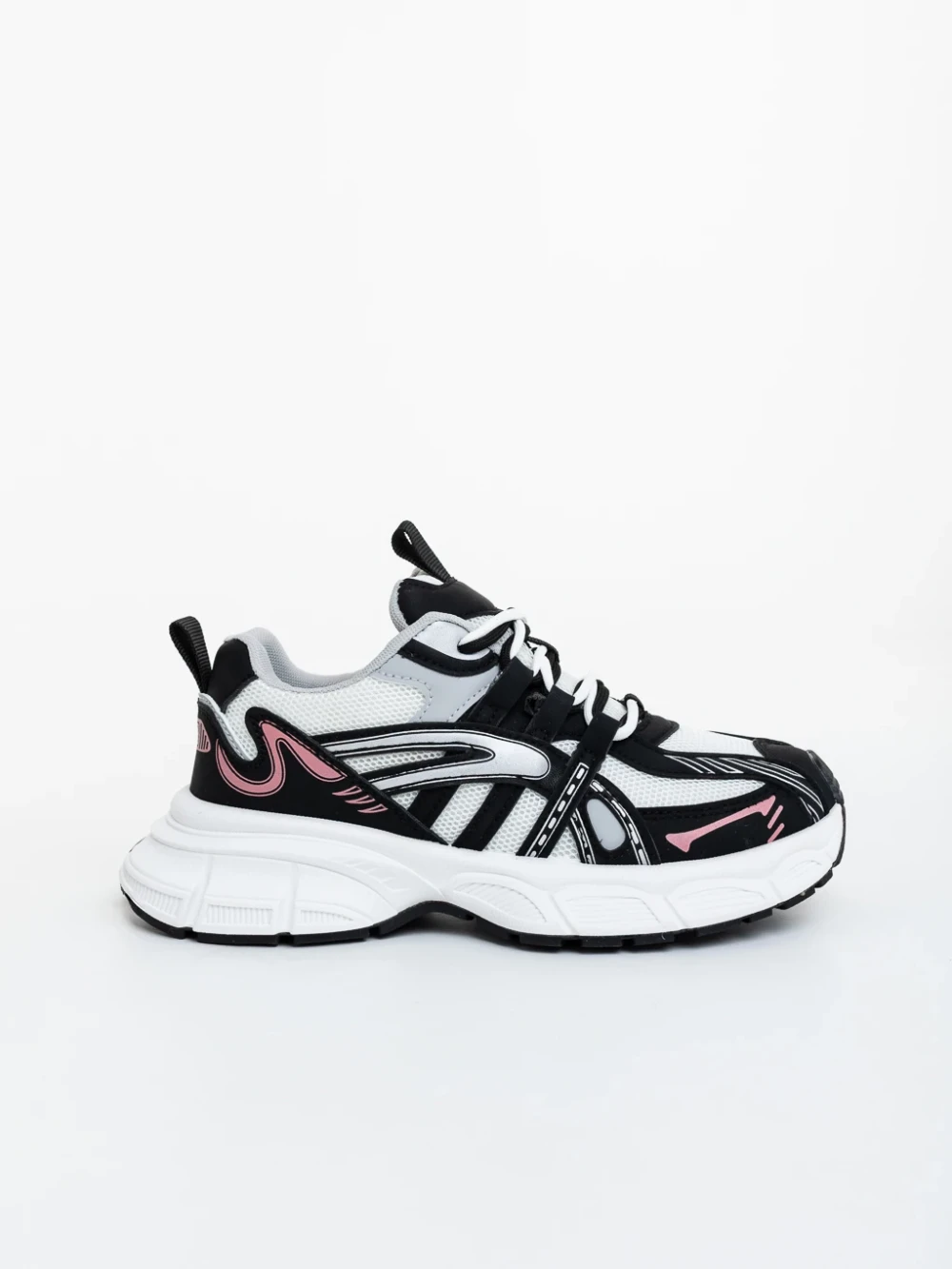 Pantofi sport dama albi cu roz din piele ecologica Amista