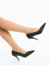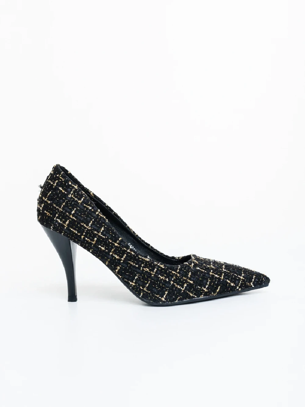 Pantofi dama cu toc negri din material textil Vicara Detalii produs