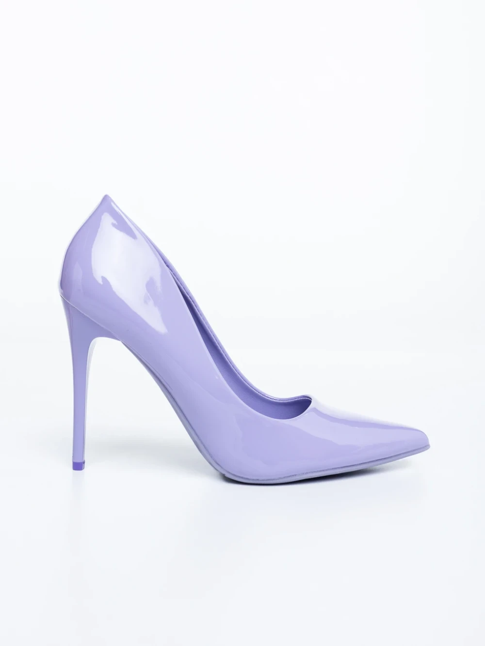 Pantofi dama cu toc mov din piele ecologica lacuita Simria