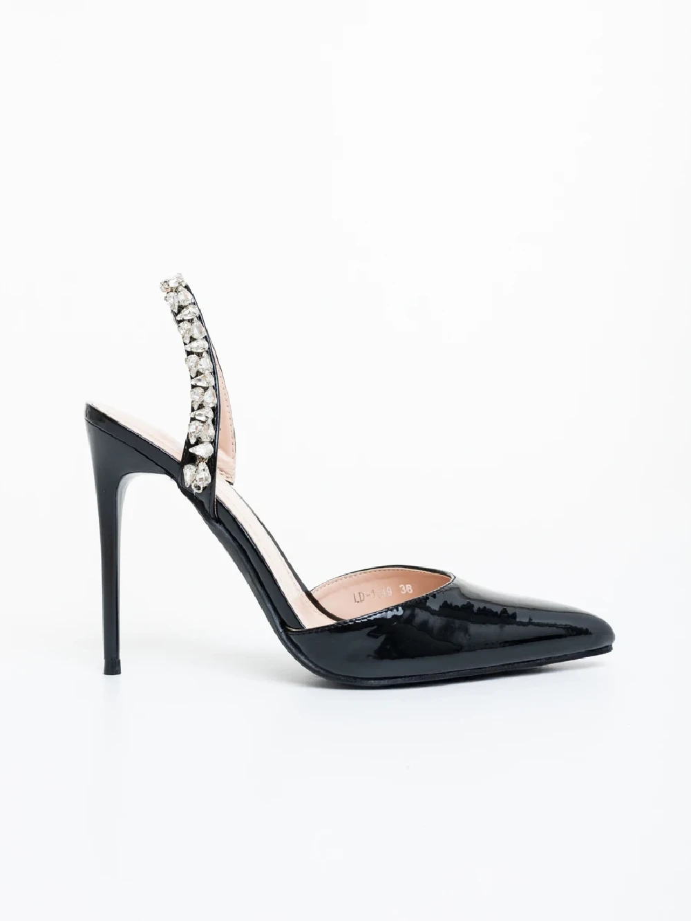 Pantofi dama cu toc negri din piele ecologica lacuita Coralina Detalii produs