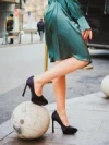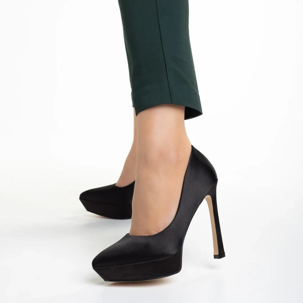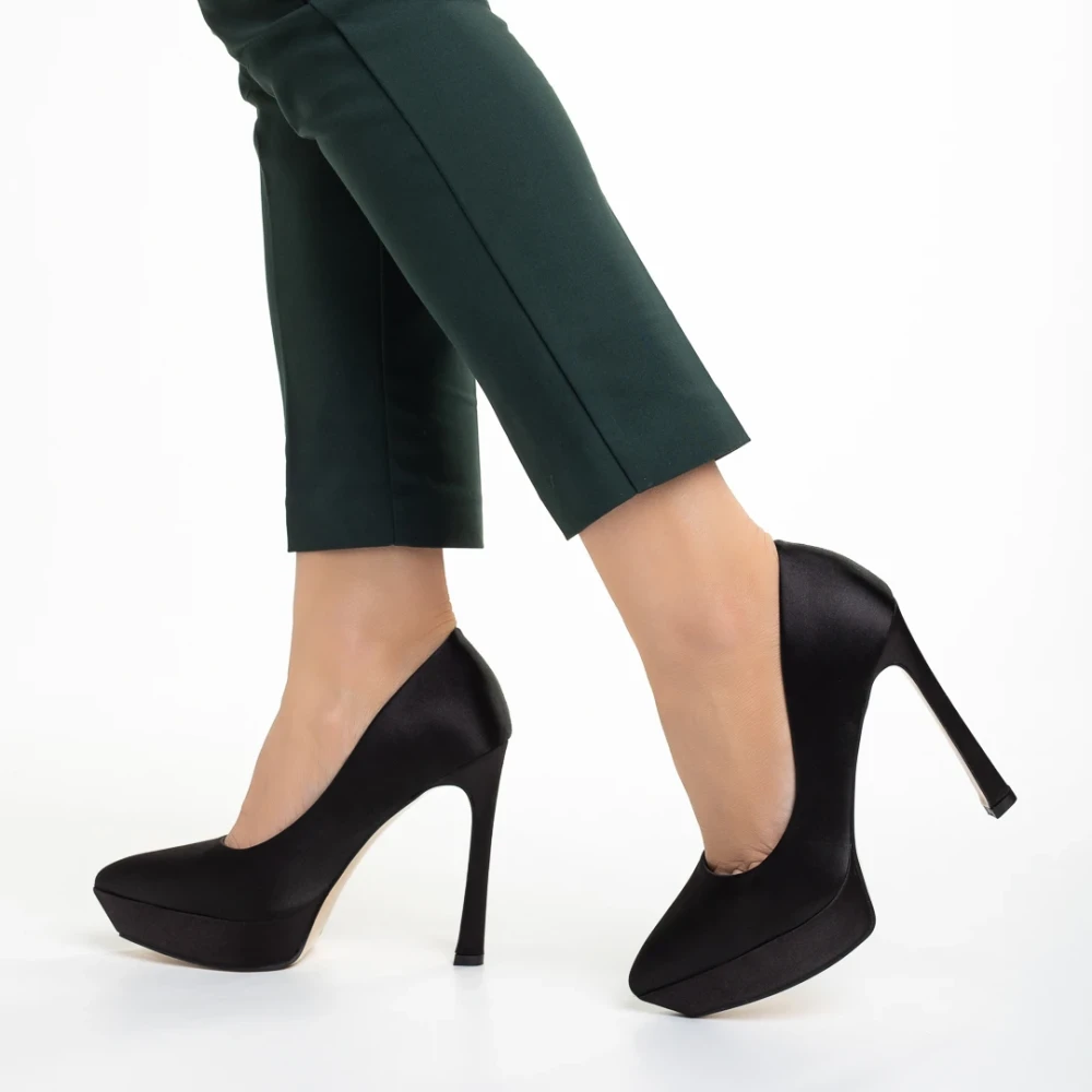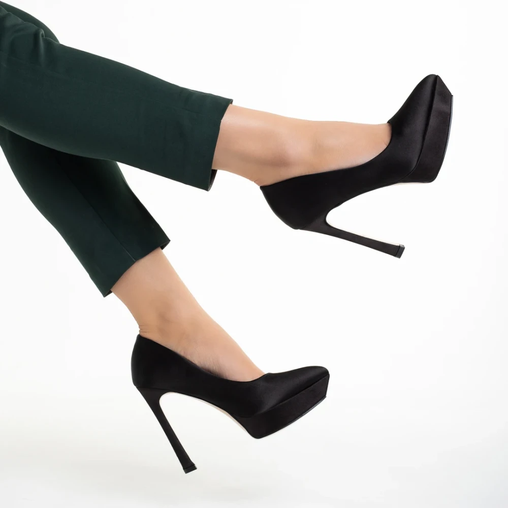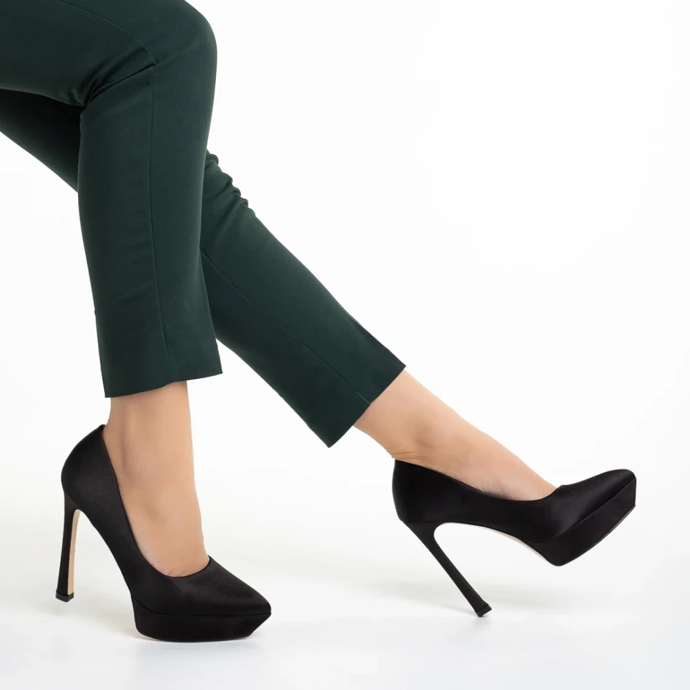 Pantofi dama negri din material textil cu toc Coriana Detalii produs