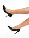 Pantofi dama negri cu toc din material textil Kenina Detalii produs