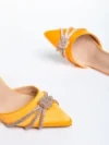 Pantofi dama portocalii cu toc din material textil Elesa Detalii produs