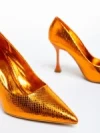 Pantofi dama portocalii cu toc din piele ecologica lacuita Emalyn Detalii produs