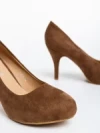 Pantofi dama khaki cu toc din material textil Neelima Detalii produs