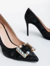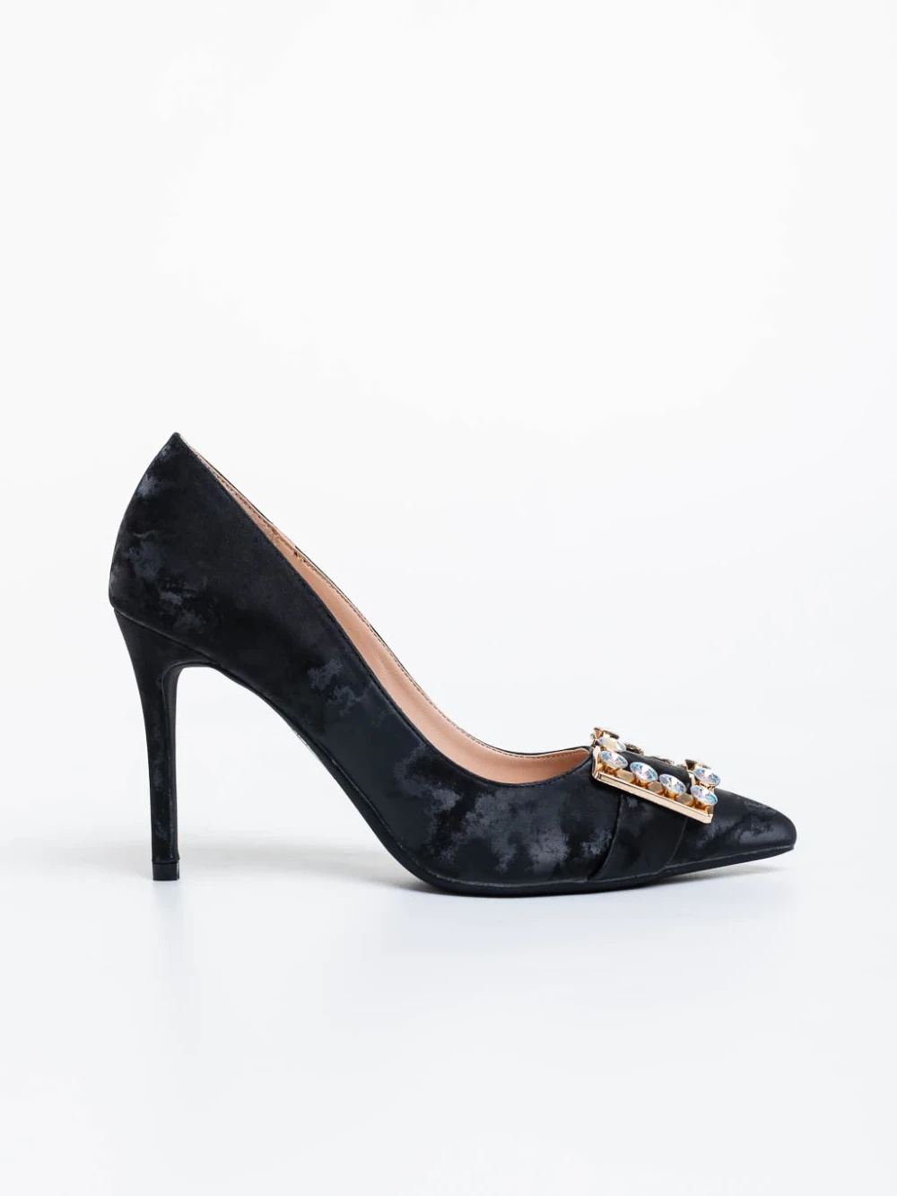 Pantofi dama negri cu toc din material textil Georgyna Detalii produs