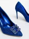 Pantofi dama albastri cu toc din material textil Xanthia Detalii produs