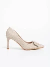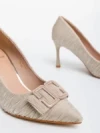 Pantofi dama bej cu toc din material textil Elsabeth Detalii produs