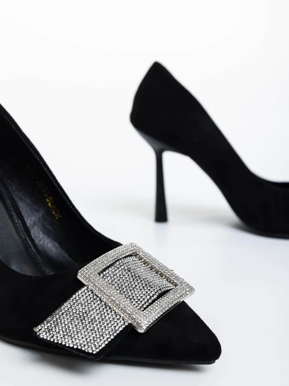 Pantofi dama cu toc mov din piele ecologica lacuita Simria