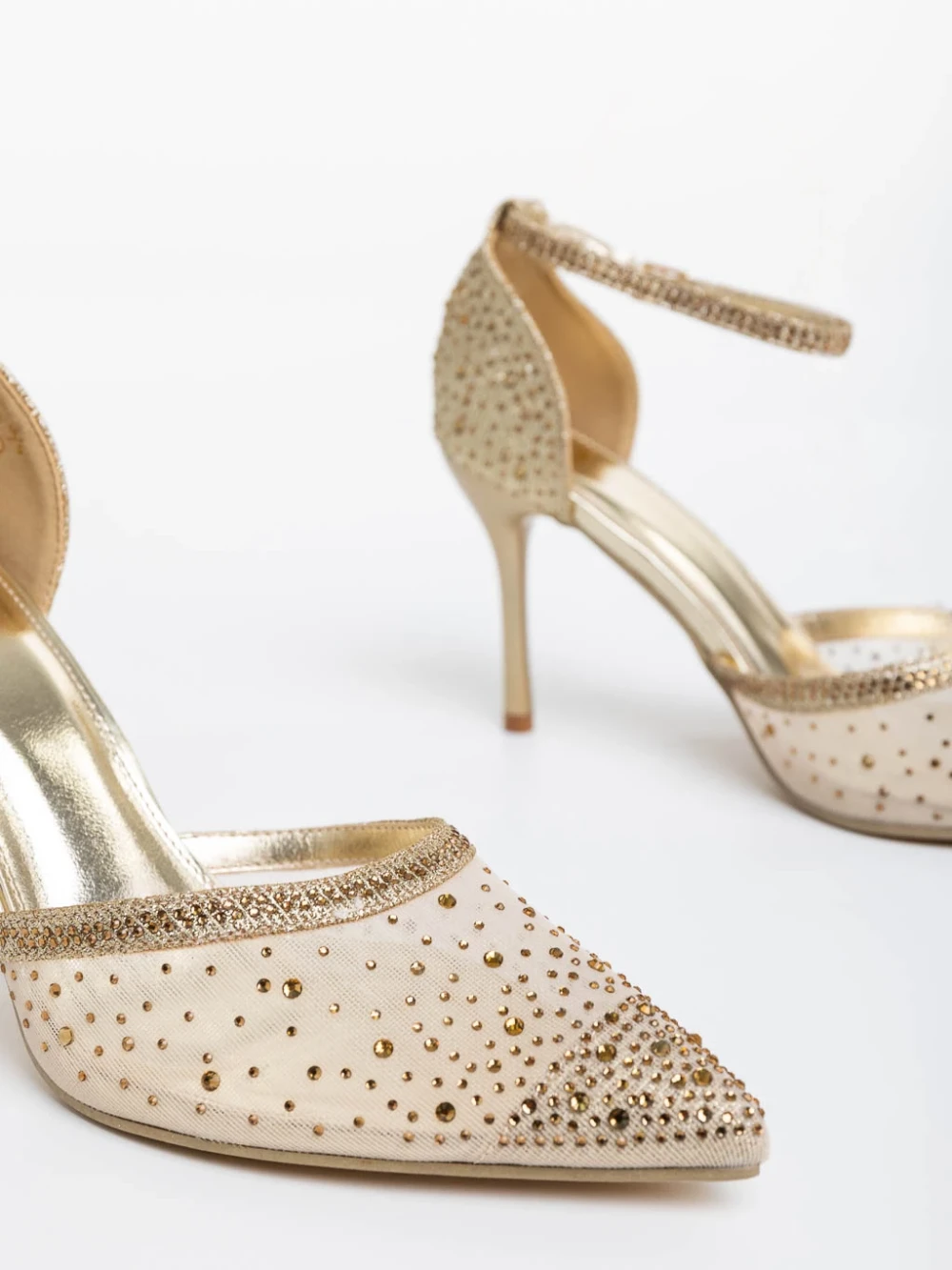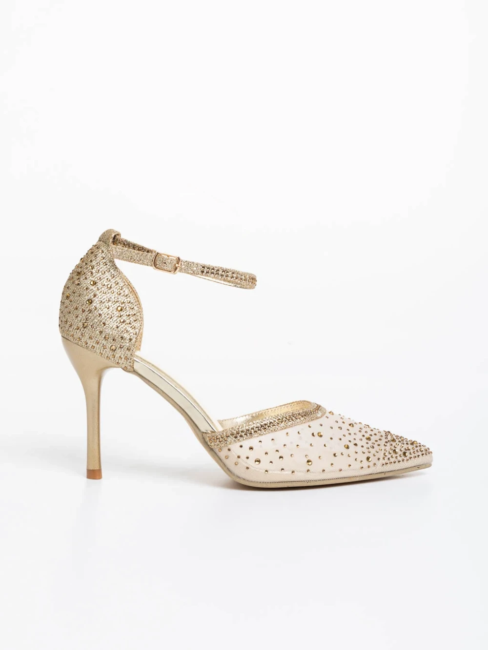 Pantofi dama aurii cu toc din material textil Eartha Detalii produs