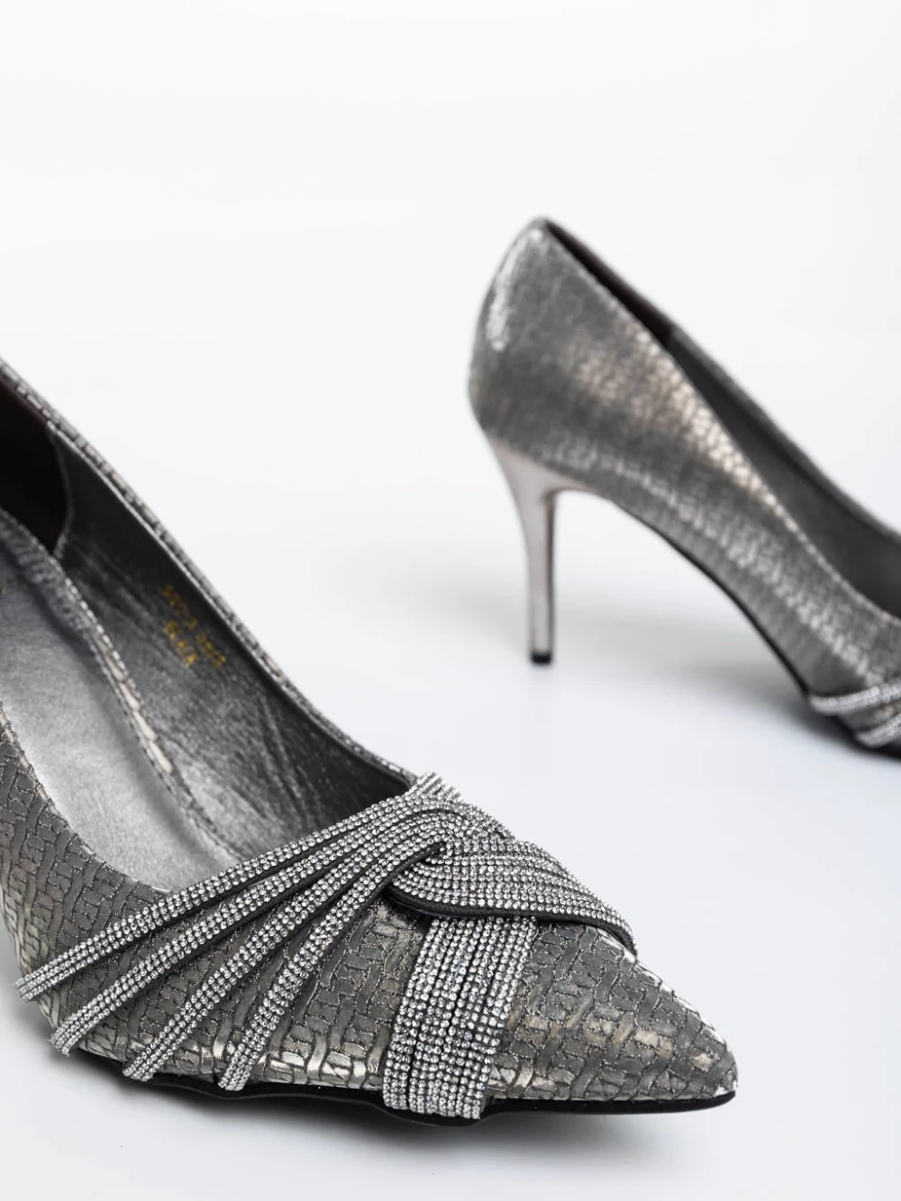 Pantofi dama argintii inchis cu toc din material textil Ellesse Detalii produs
