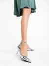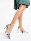 Pantofi dama cu toc negri din piele ecologica lacuita Coralina