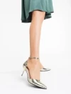 Pantofi dama aurii cu toc din piele ecologica Shanza Detalii produs
