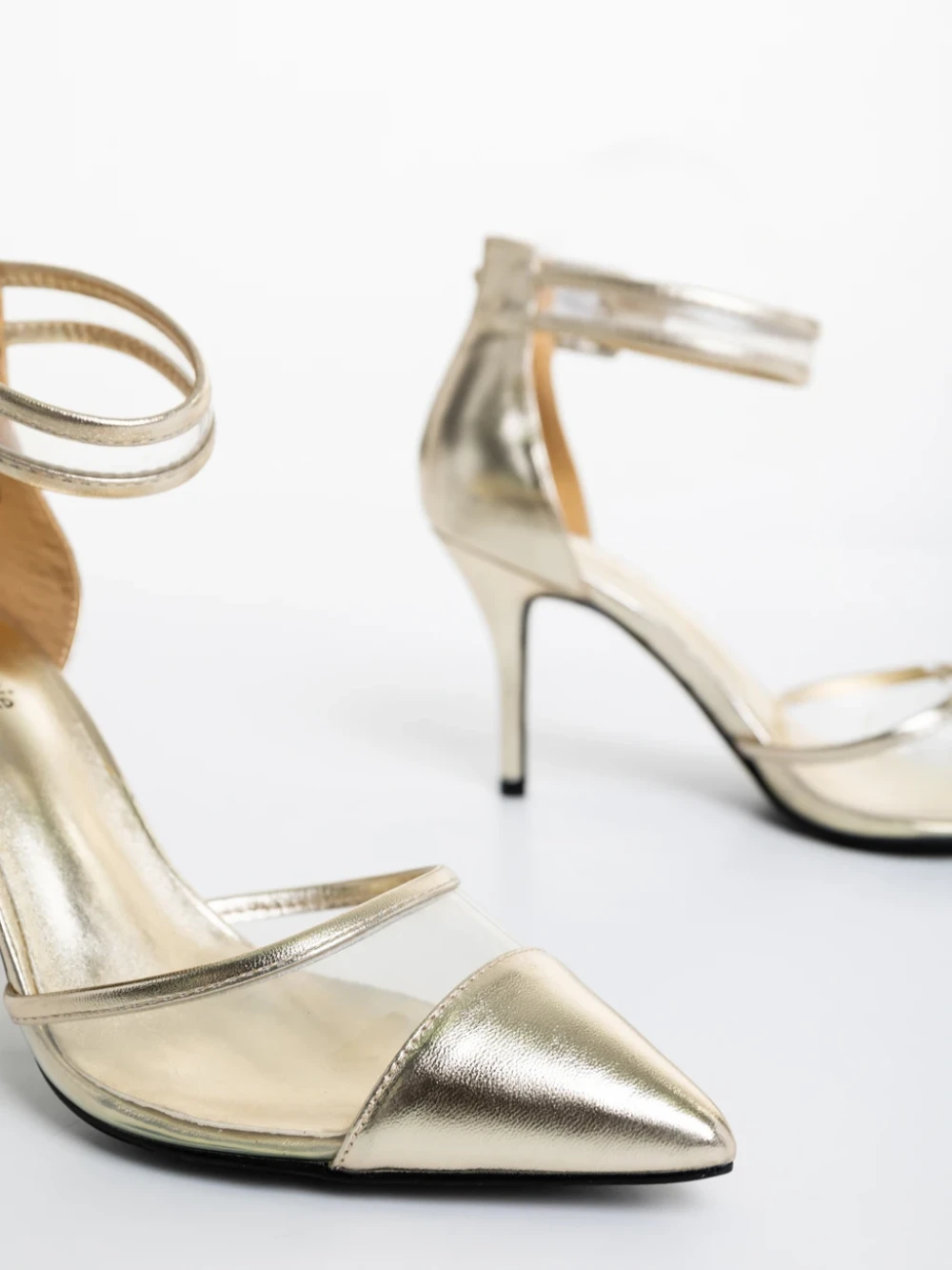 Pantofi dama aurii cu toc din piele ecologica Floriette Detalii produs