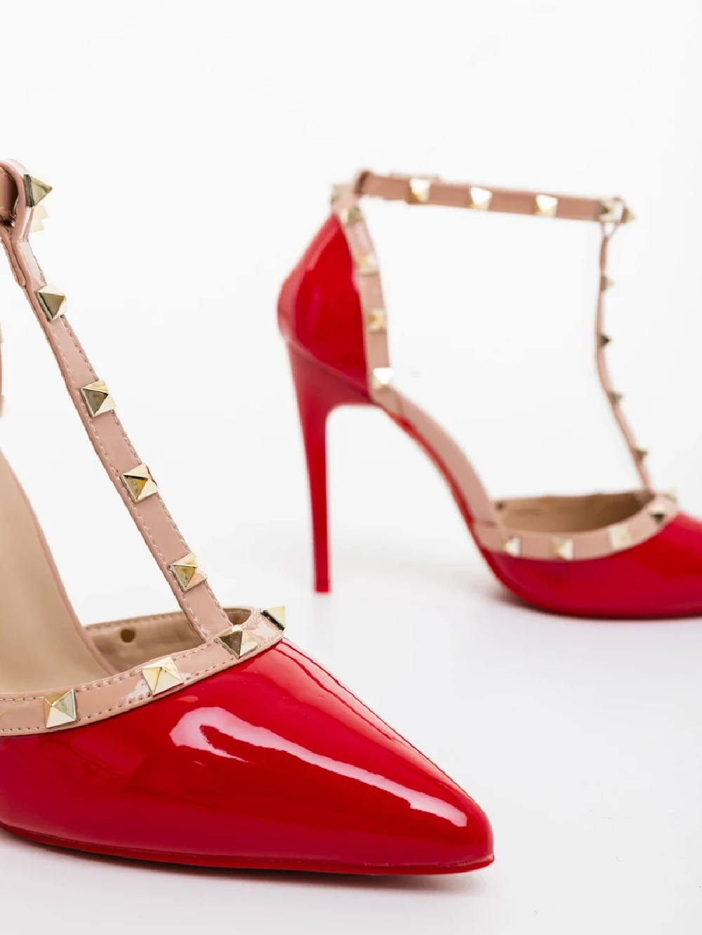 Pantofi dama cu toc rosii din piele ecologica lacuita Namora Detalii produs