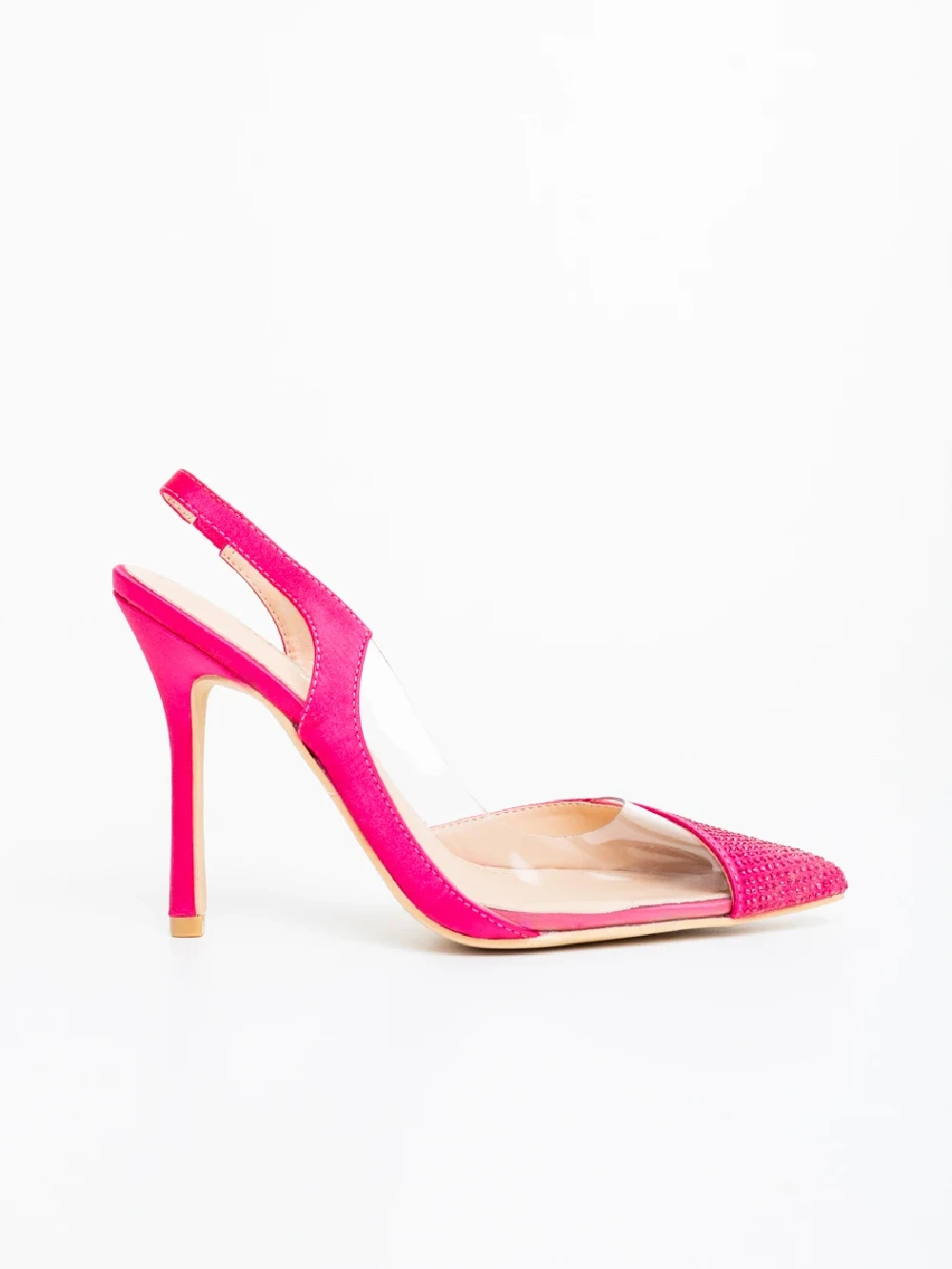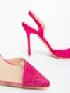 Pantofi dama cu toc roz din material textil Tameza Detalii produs