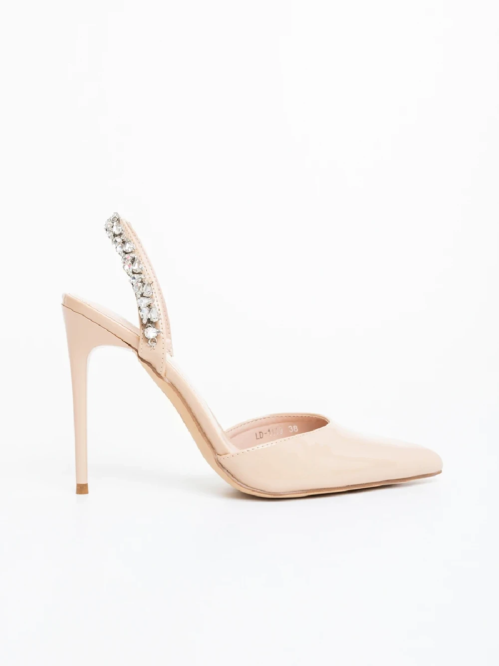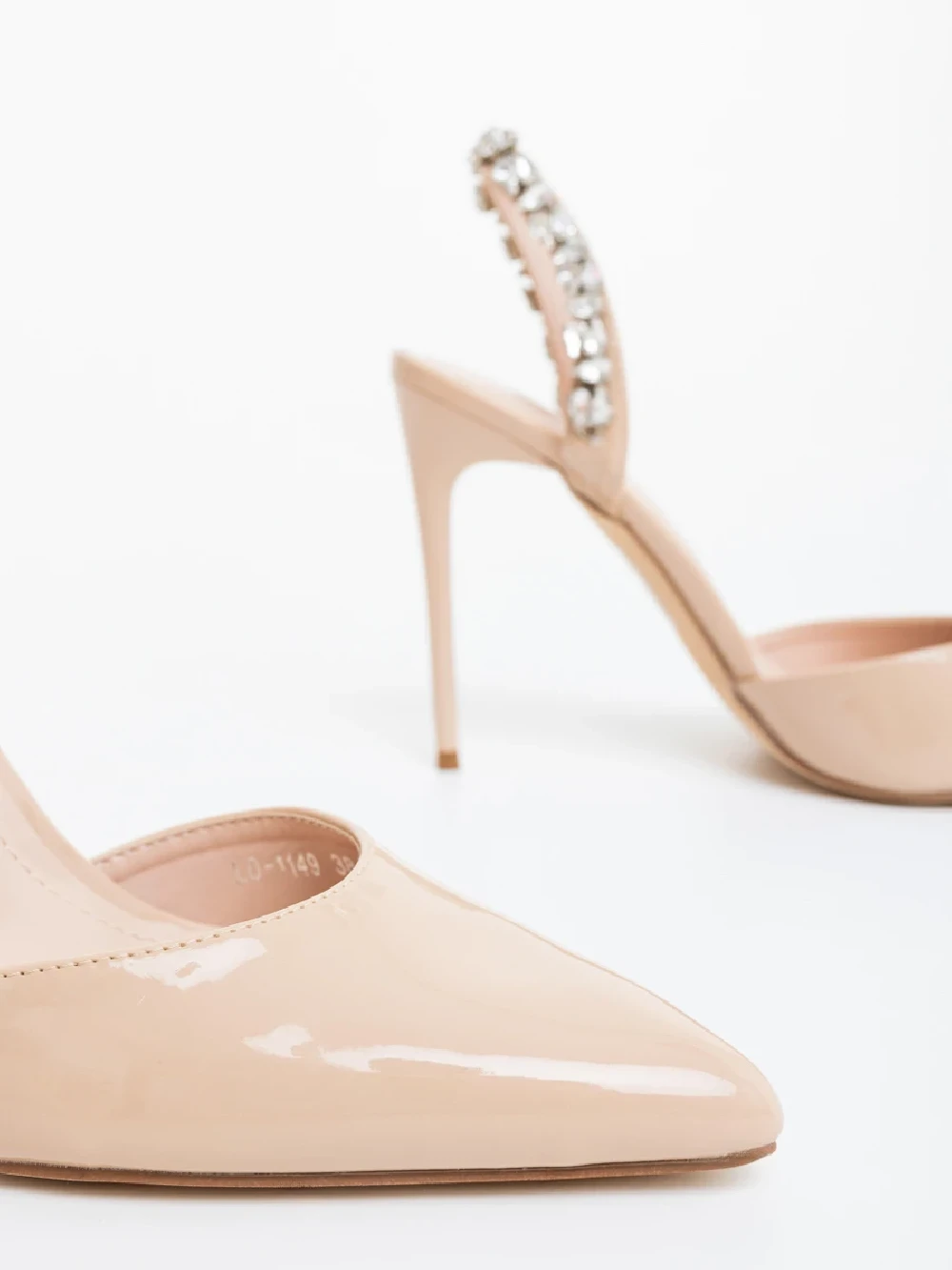 Pantofi dama cu toc bej din piele ecologica lacuita Coralina Detalii produs