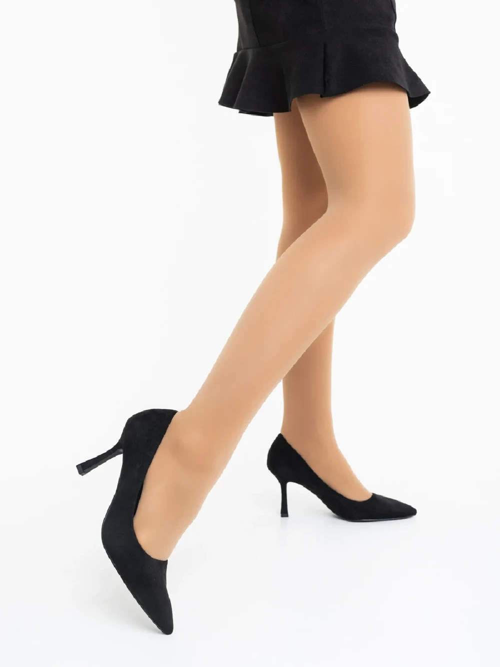 Pantofi dama cu toc negri din material textil Dorma Detalii produs