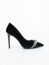 Pantofi dama cu toc negri din material textil Floriana Detalii produs