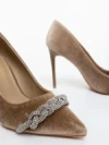 Pantofi dama cu toc bej din material textil Floriana Detalii produs