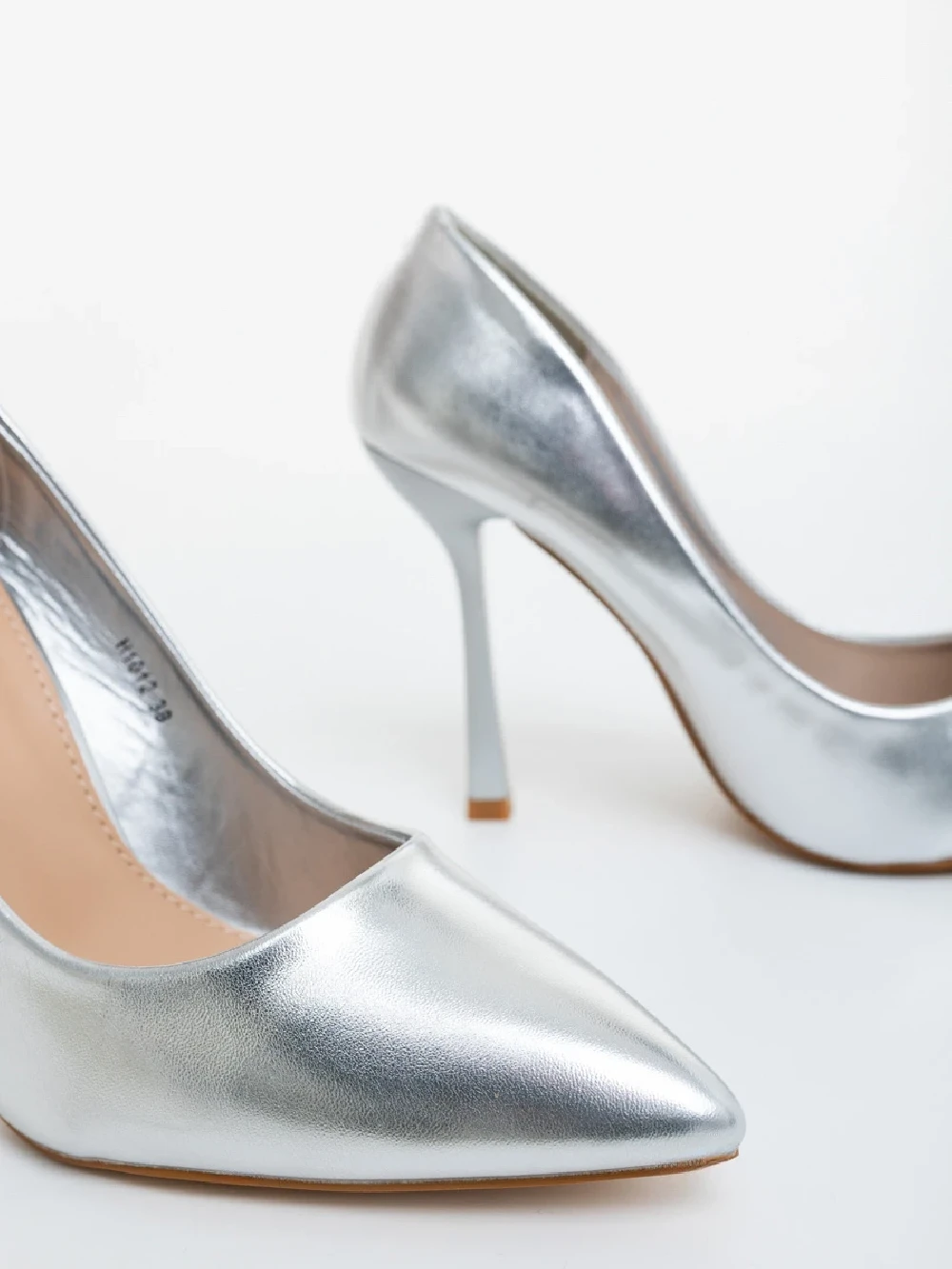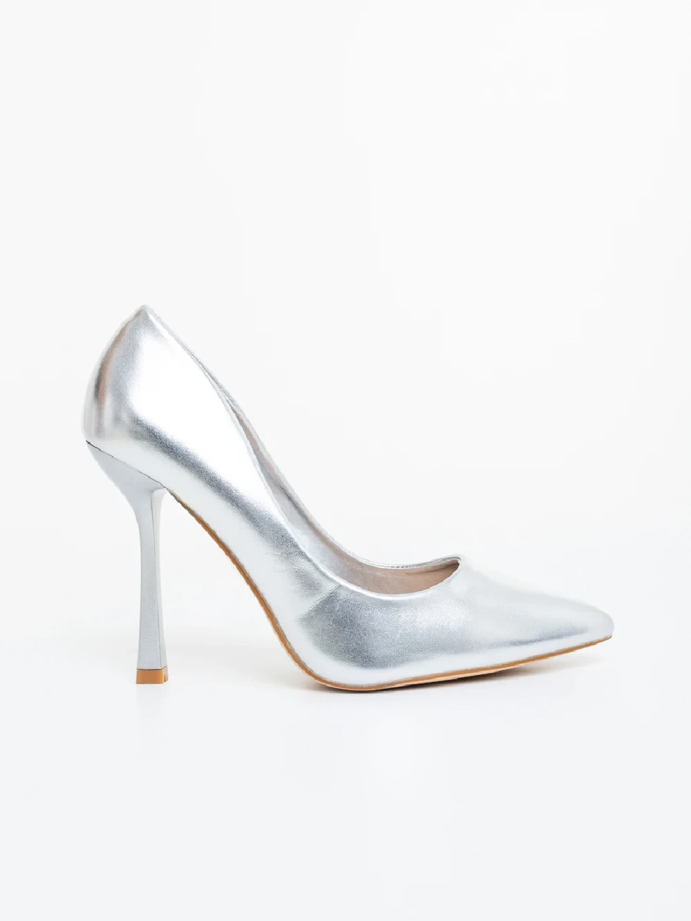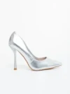Pantofi dama cu toc argintii din piele ecologica lacuita Frodina Detalii produs