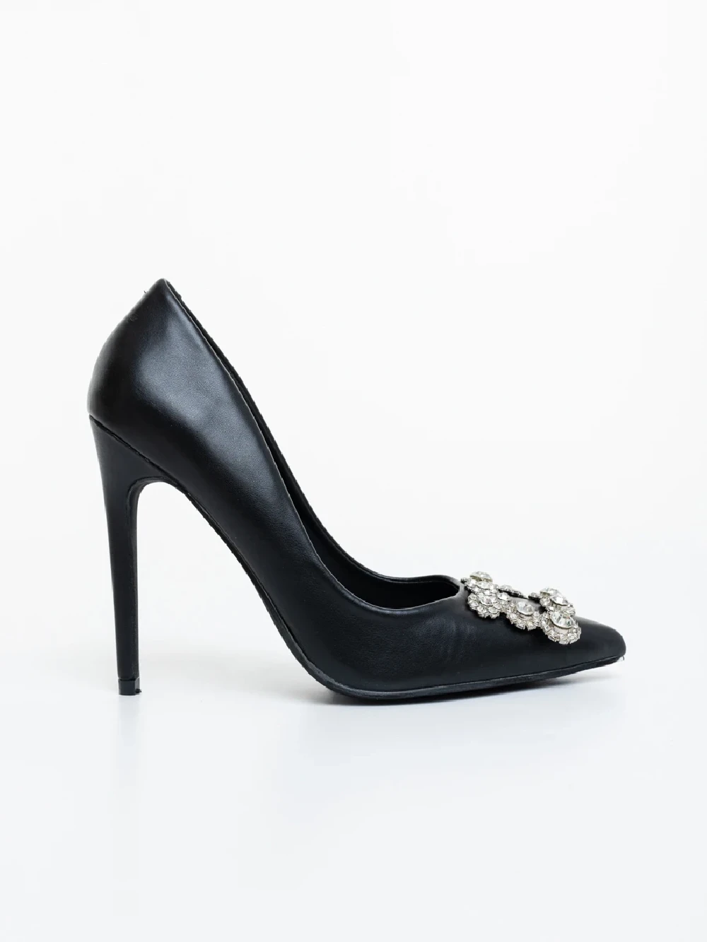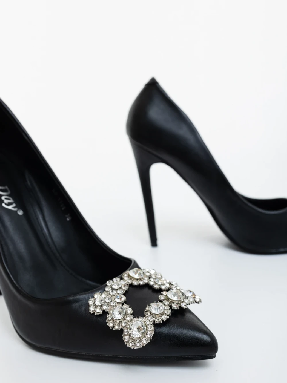 Pantofi dama cu toc negri din piele ecologica Danzia Detalii produs