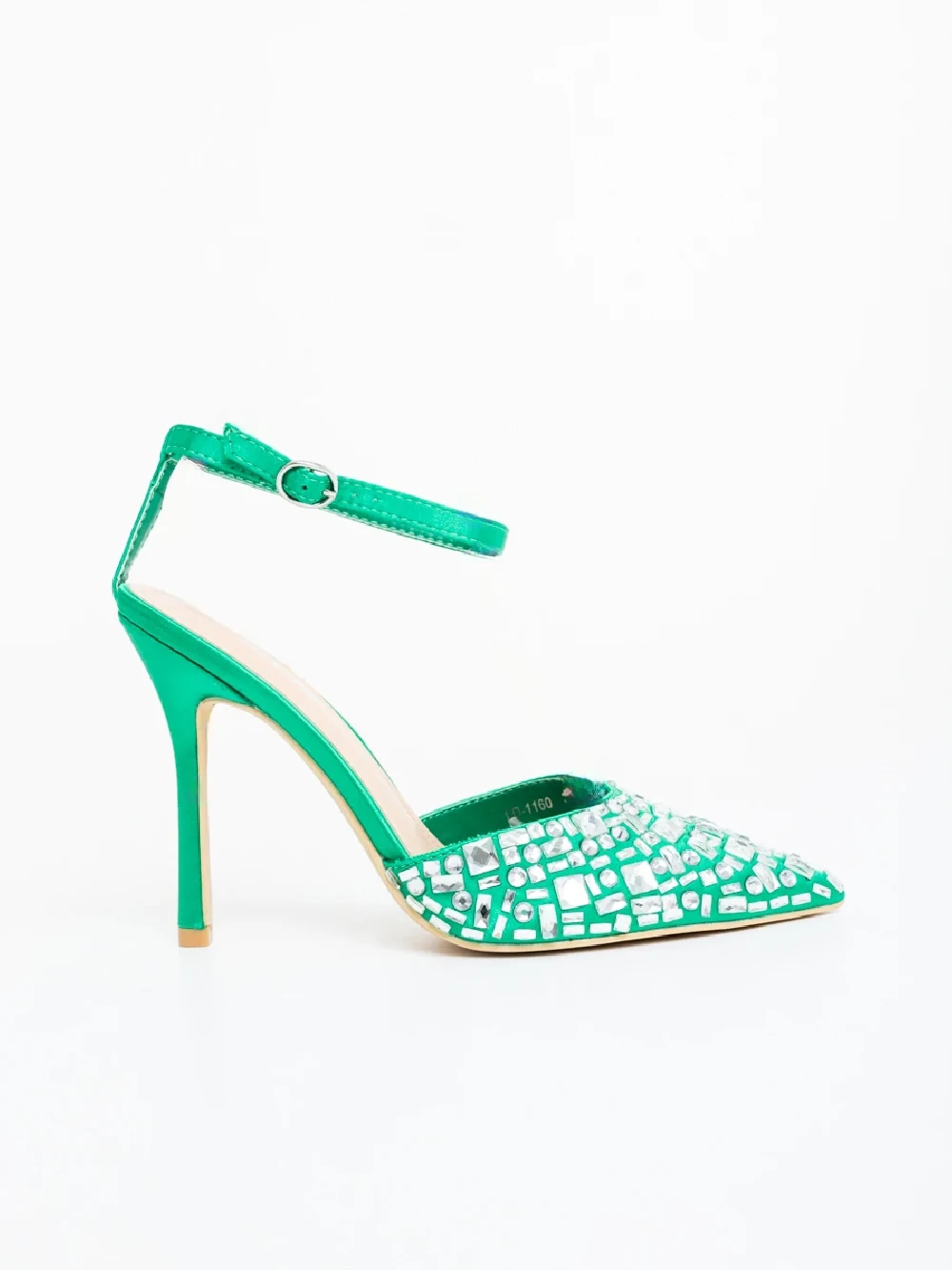 Pantofi dama cu toc verzi din material textil Merenda Detalii produs